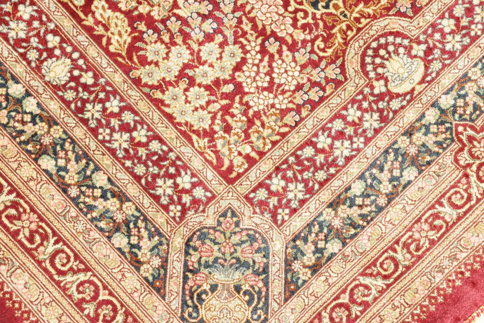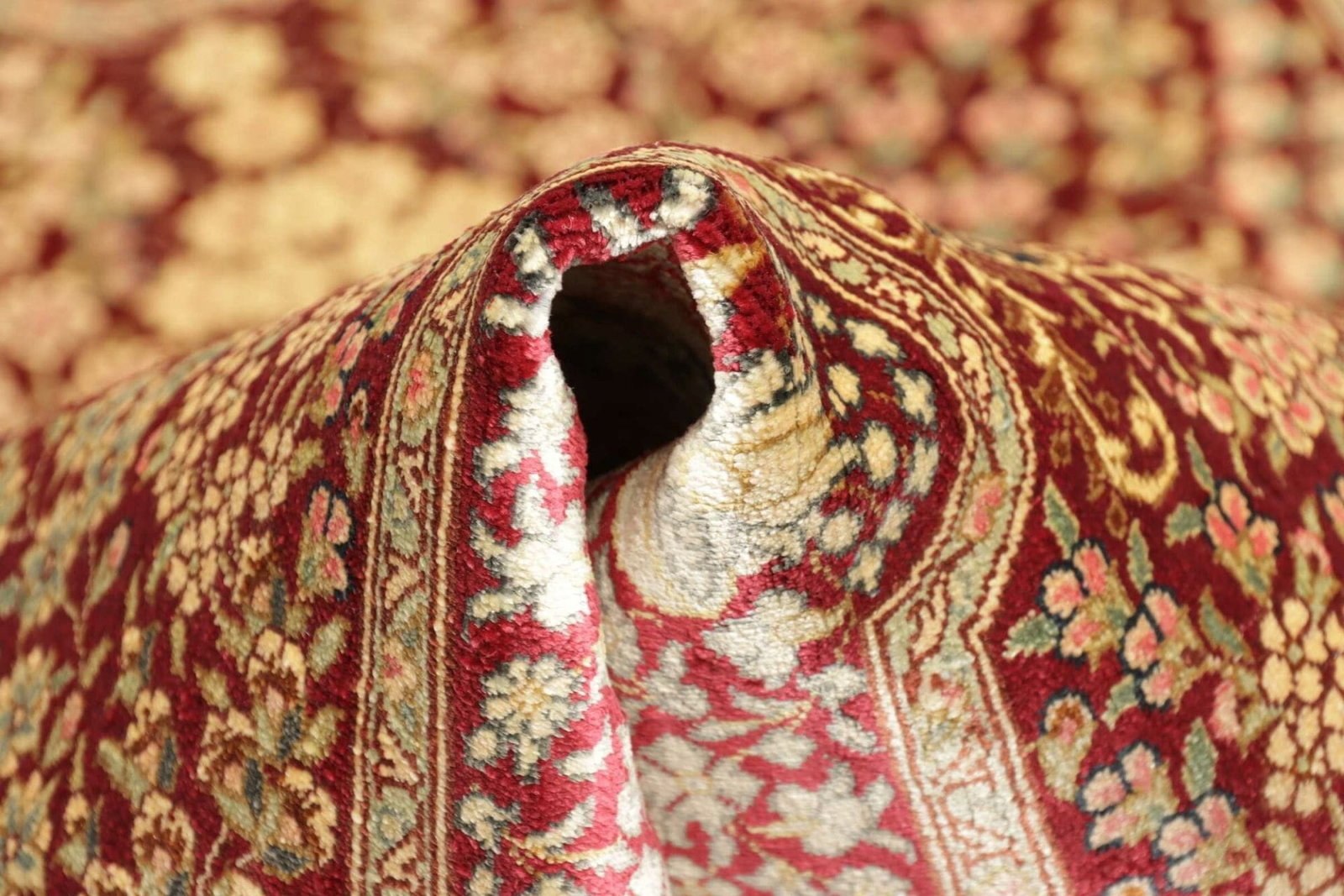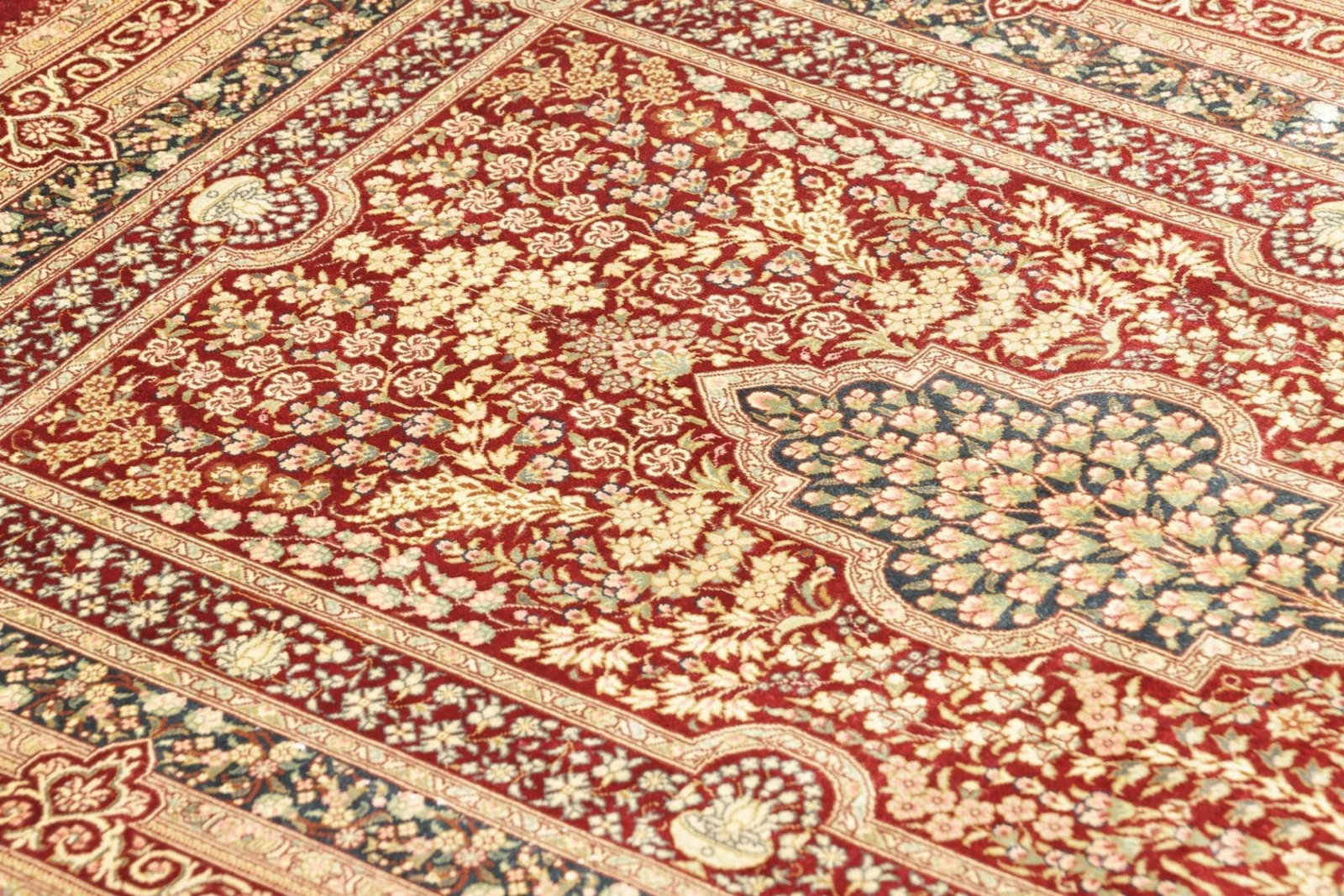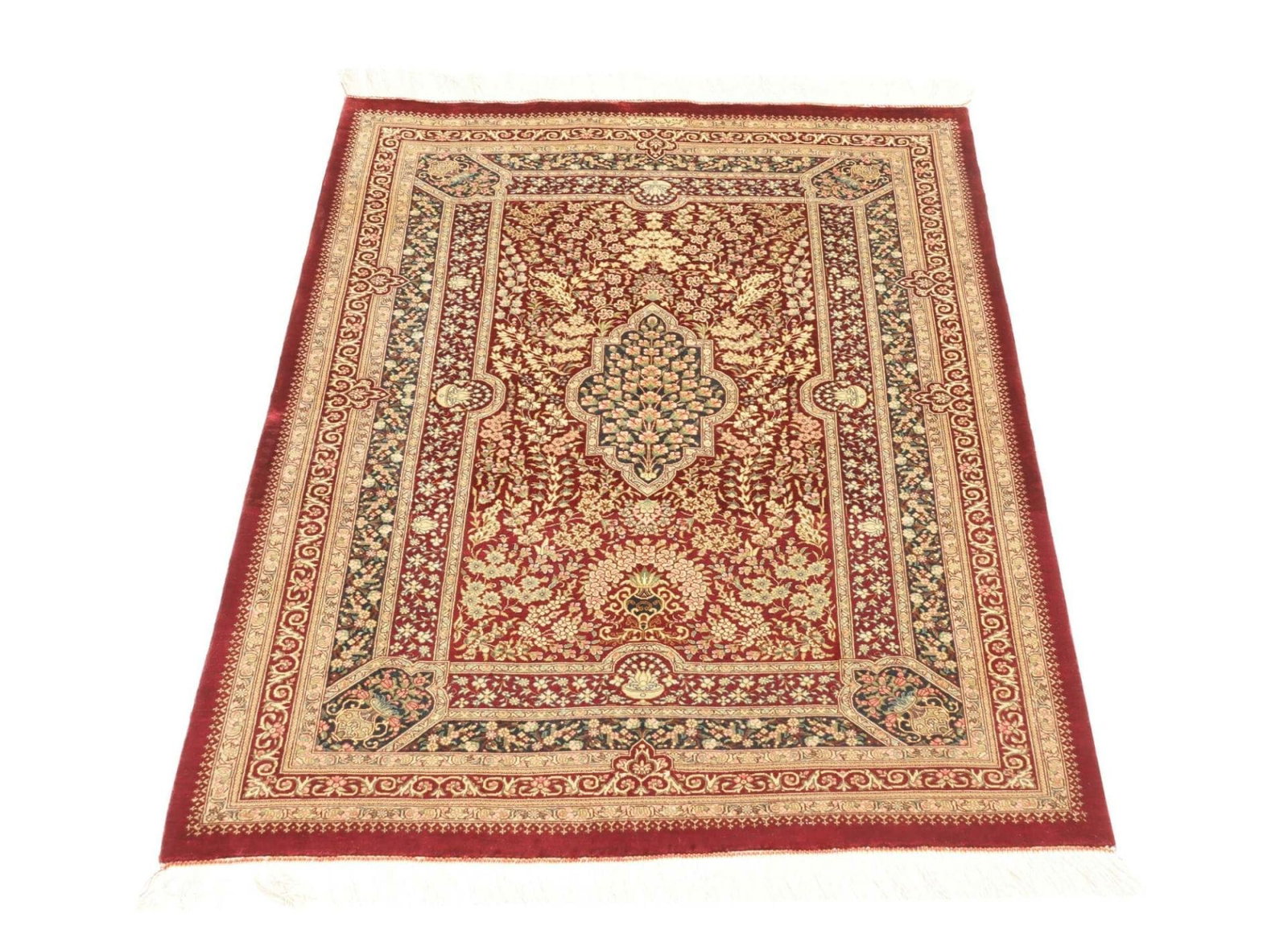 5531$Ursprünglicher Preis war: 5531$4940$Aktueller Preis ist: 4940$Handgeknüpfter Ghom Teppich | Knotendichte: ca. 900.000 Knoten/m² | Flor: 100% Seide | Kette: 100% Seide | Größe: 83 x 117 cm | Herkunft: Iran | Höhe: ca. 4 mm | Exklusive, florale und geometrische Muster