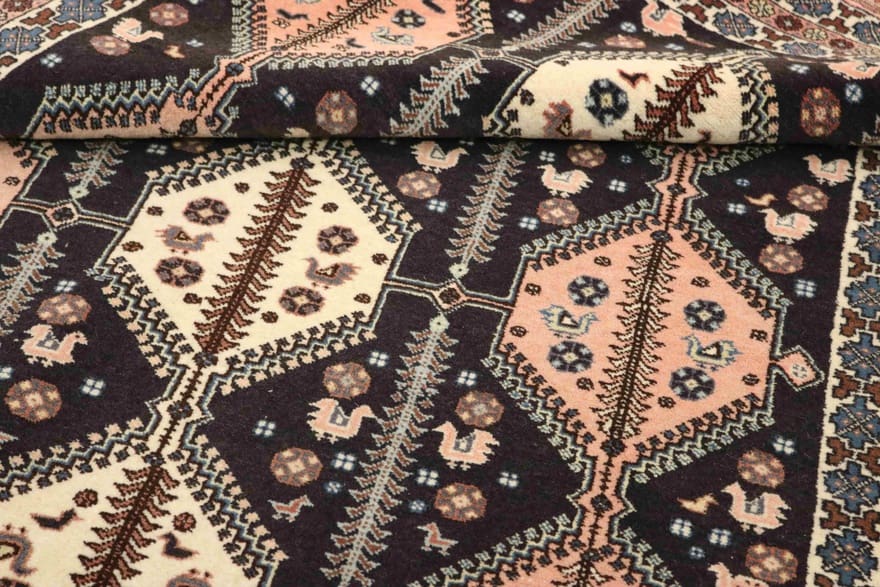 Hochwertiger Ghudjan Teppich | Knotendichte: 320.000 – 360.000 Knoten/m² | Material: 100 % handgesponnene Wolle | Größe: 169×121 cm | Farbe: Schwarz/Grau | Zustand: Neu | Herkunft: Handgefertigt in Iran/Persien | Pflege: Regelmäßiges Staubsaugen empfohlen