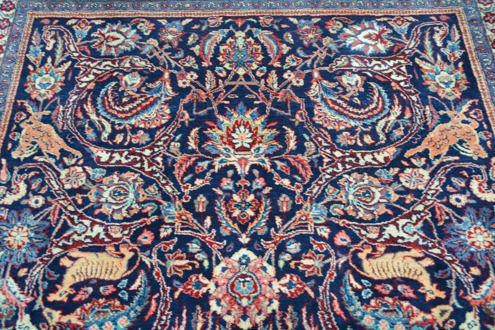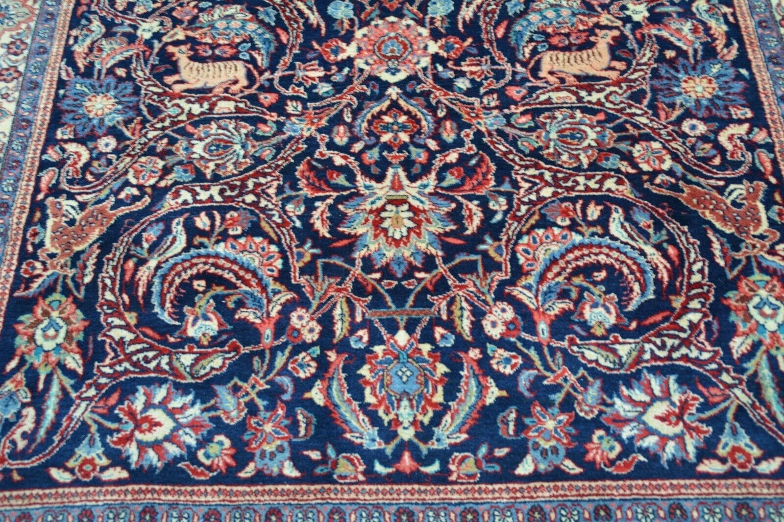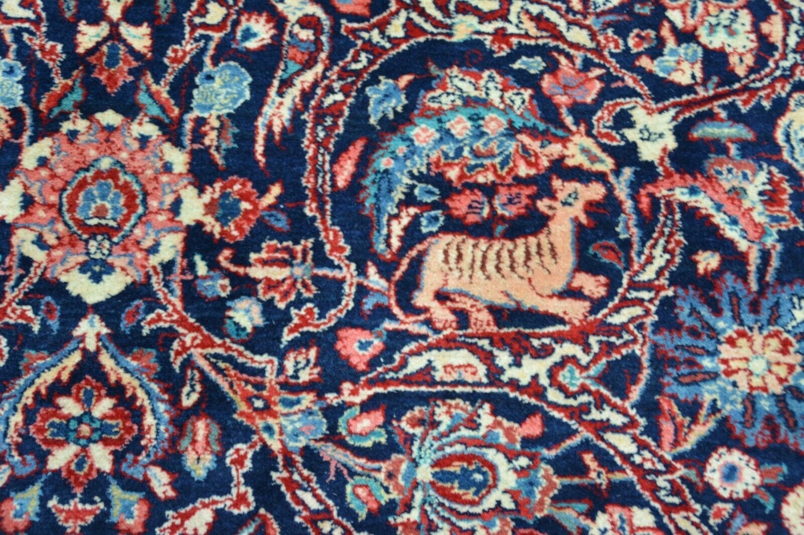 Ein weiterer bemerkenswerter Aspekt dieses antiken Teppichs ist sein Zustand. Trotz seines Alters ist der Teppich in einem sehr guten Erhaltungszustand, was auf die sorgfältige Verarbeitung und die Verwendung erstklassiger Materialien hinweist. Dies macht ihn nicht nur zu einem schönen Dekorationsstück, sondern auch zu einer lohnenden Investition, da gut erhaltene antike Teppiche im Laufe der Zeit an Wert gewinnen.