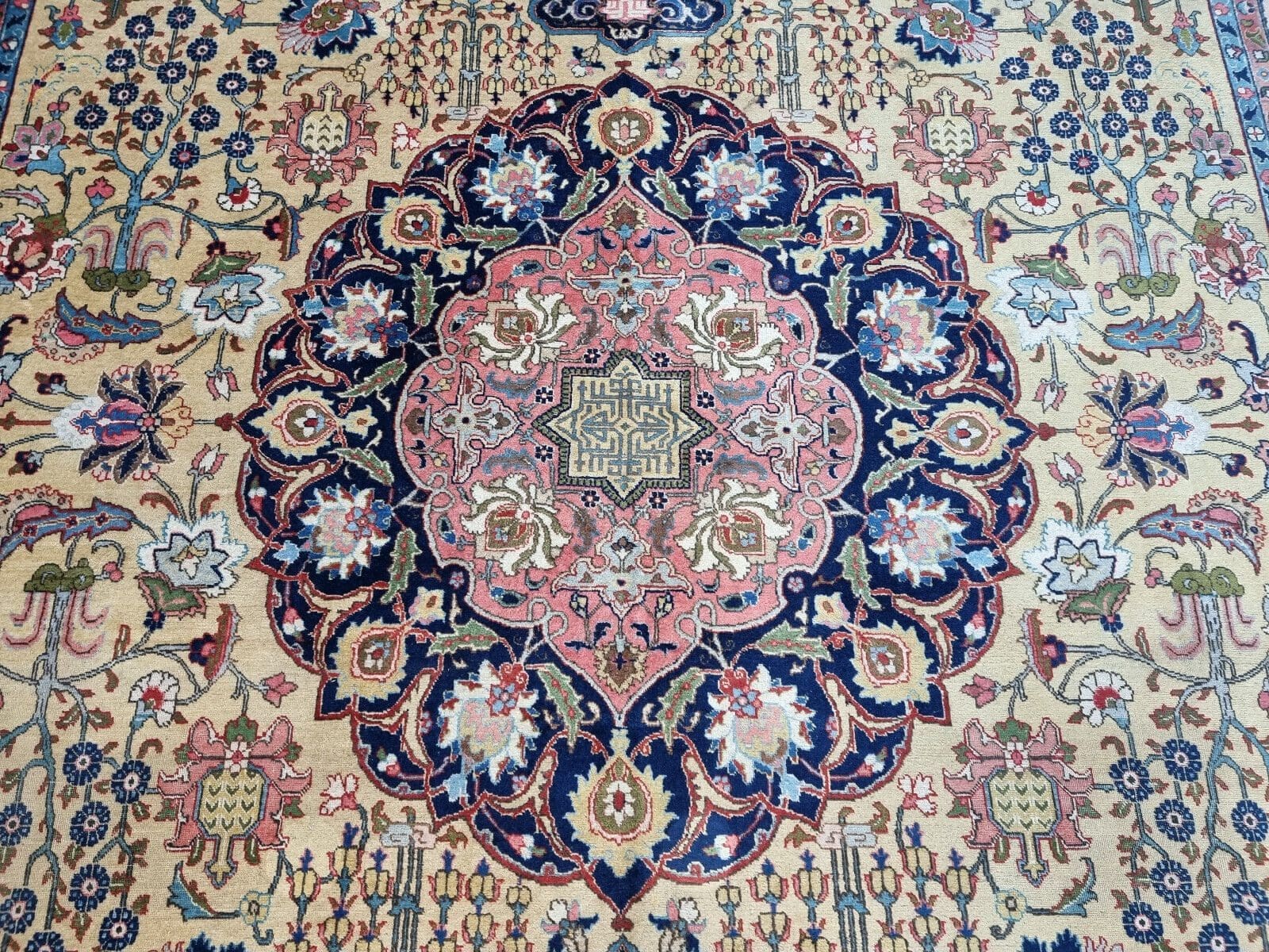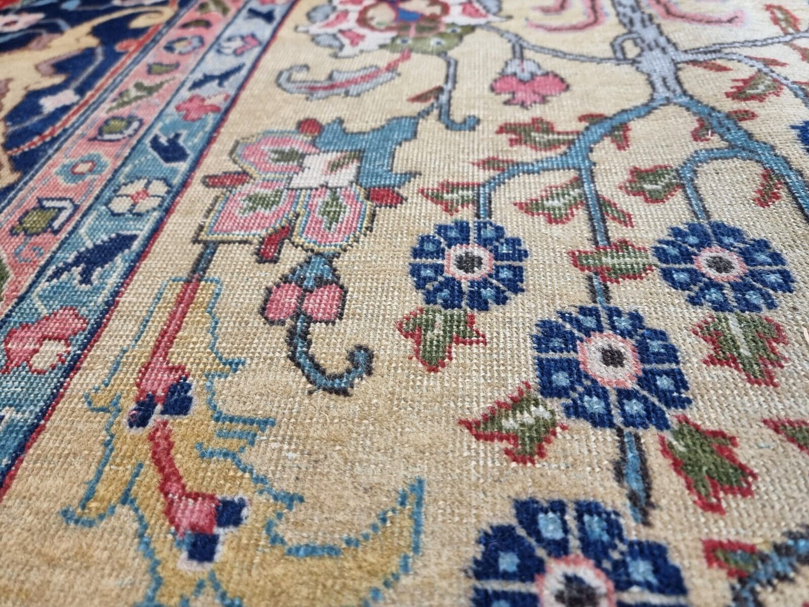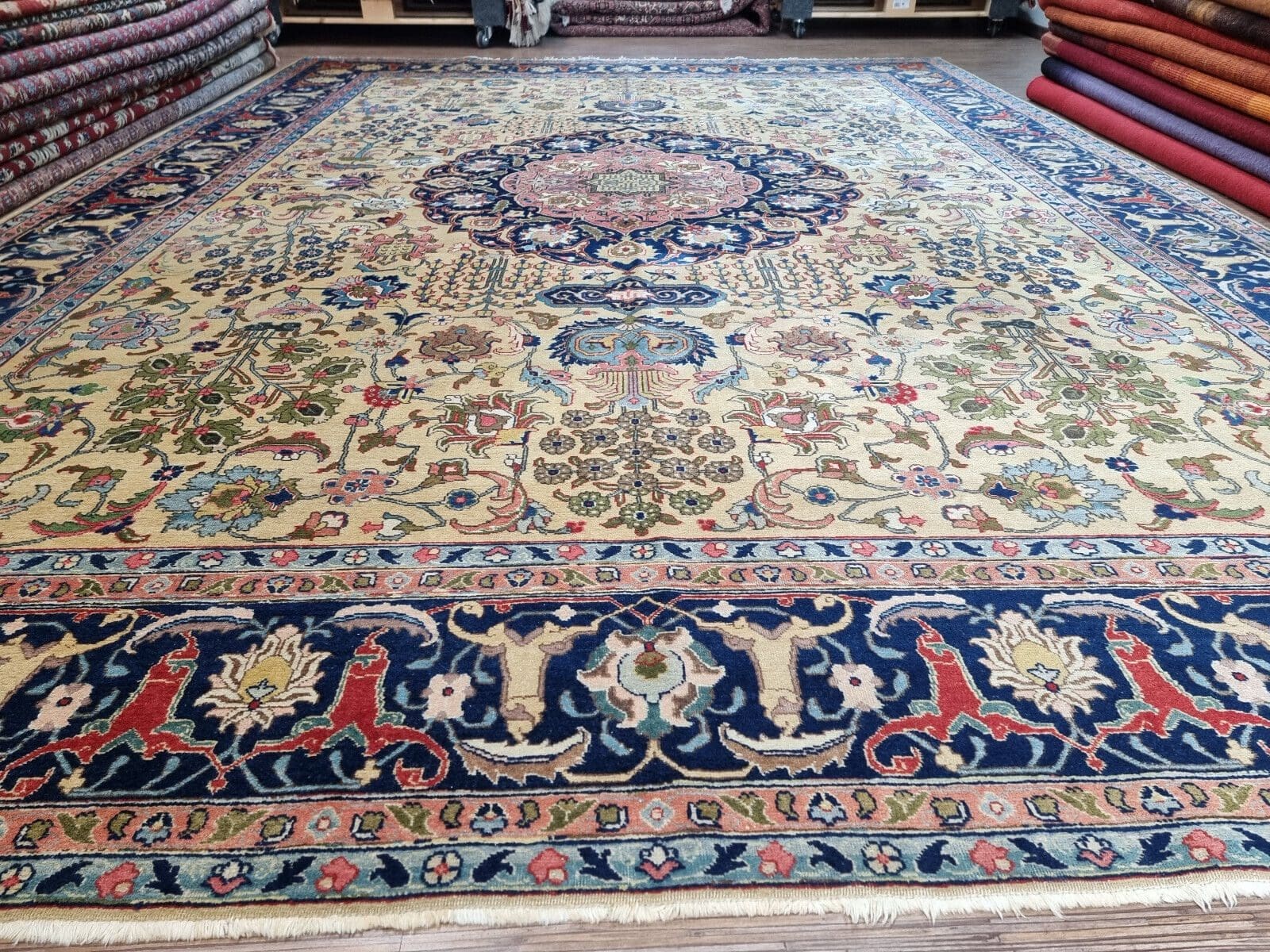 Wunderschöner Original Persischer Täbriz | Größe: 412×301 cm | Knotendichte: Handgeknüpft | Material: Schurwolle auf Baumwolle | Zustand: 80 Jahre alt mit leichten Abnutzungen | Muster: Floral | Herkunft: Persien | Stil: Orientalisch | Signiert von „Javan Amirkhiz“