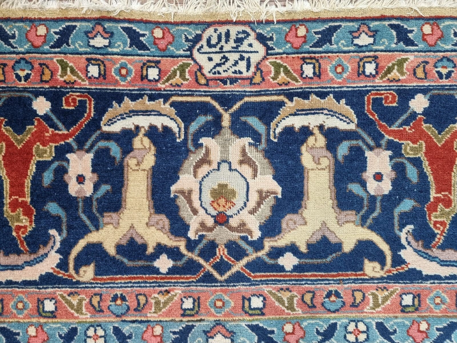 Ein ganz besonderes Merkmal dieses Teppichs ist, dass er signiert ist. Dies ist ein Zeichen für den hohen Stellenwert des Herstellers und garantiert die Echtheit des Teppichs. Die signierten Teppiche sind oft wertvoller und werden von Sammlern und Liebhabern auf der ganzen Welt geschätzt. Dieser Teppich ist nicht nur ein praktisches Stück für Ihre Inneneinrichtung, sondern auch ein Sammlerstück mit historischem Wert. Jeder Blick auf ihn wird Sie an die reiche, kulturelle Geschichte der persischen Teppichkunst erinnern und Ihre Räume mit einem Hauch von Eleganz und Tradition bereichern.