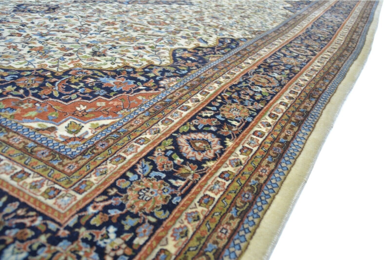Handgeknüpfter indischer Teppich | Größe: 344 x 250 cm | Material: 90% Wolle, 10% Baumwolle | Florhöhe: 1,5 cm | Zustand: Gebraucht, professionell gereinigt | Stil: Traditionell Orientalisch/Indisch | Besonderheiten: Für Fußbodenheizung geeignet | Muster: Orientalisch | Form: Rechteckig | Regionales Design: Indisch | Verwendung: Für verschiedene Zimmer geeignet (z.B. Wohnzimmer, Schlafzimmer)