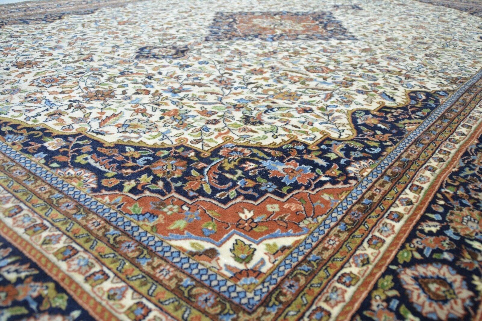3067$Ursprünglicher Preis war: 3067$986$Aktueller Preis ist: 986$ Weiterlesen(Verkauft) W1 (#203) ca. 345x245cm NEU Handgeknüpfter Nain Perserteppich mit Seide 12la