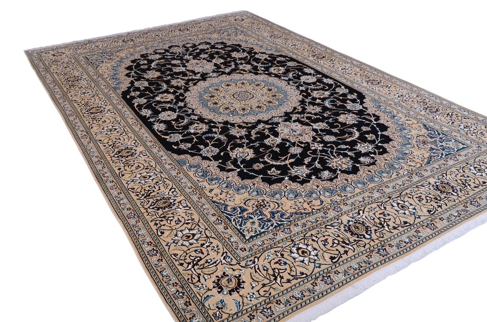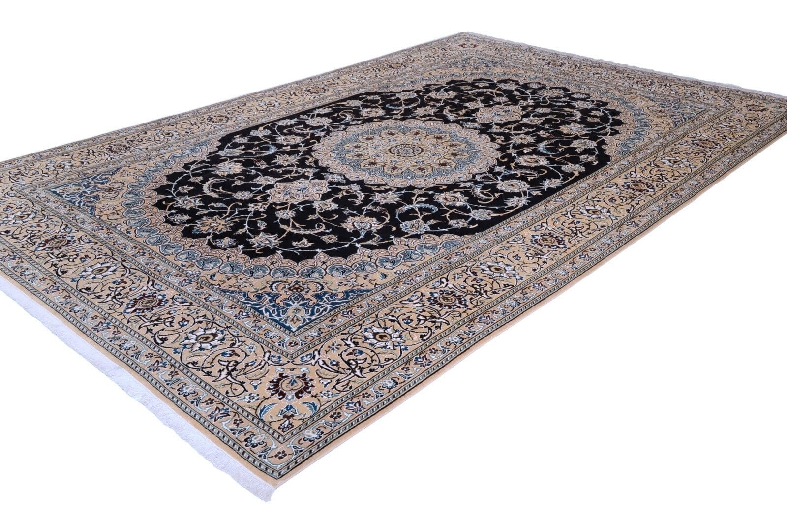 Handgeknüpfter Orientteppich Nain 9 La | Größe: 364×240 cm | Knotendichte: 400.000 Knoten/m² | Material: 100% Schurwolle | Zustand: Perfekt, unbenutzt | Herkunft: Persien | Florhöhe: 10 mm | Geeignet für Fußbodenheizung | Stil: Traditionell Orientalisch/Persisch | Alter: 10-15 Jahre