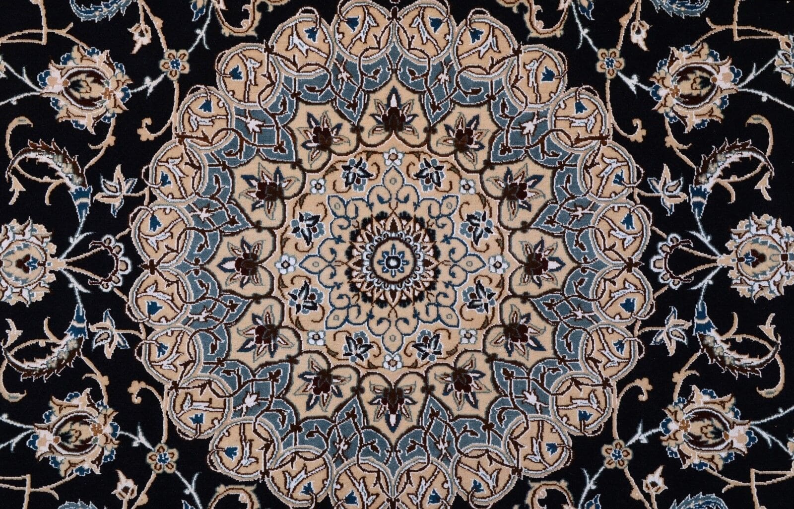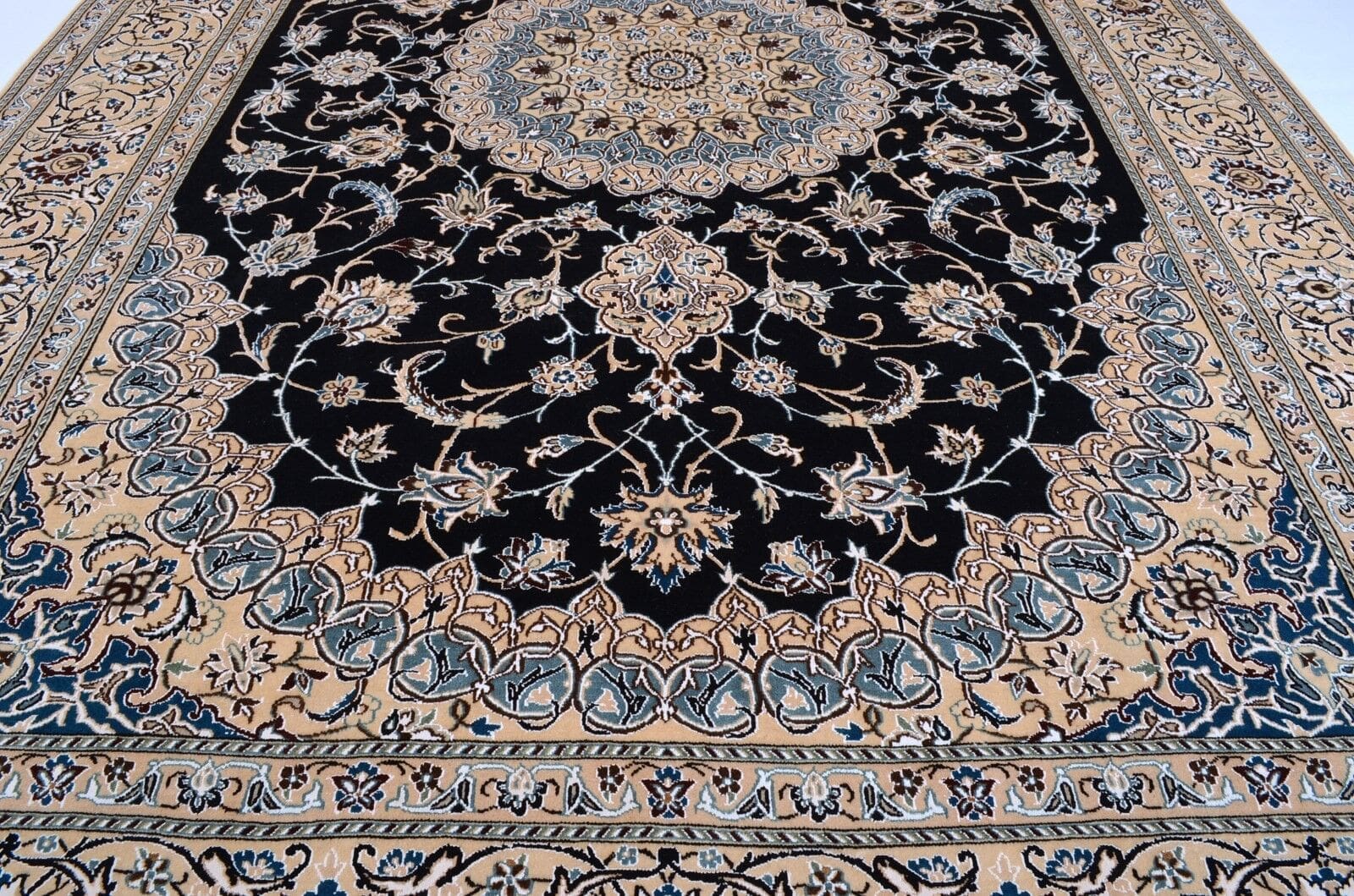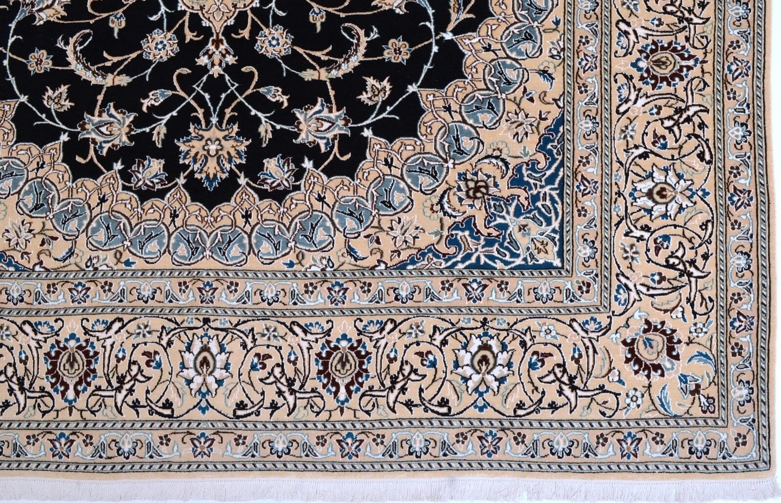 Handgeknüpfter Orientteppich Nain aus feiner Schurwolle in Blau
