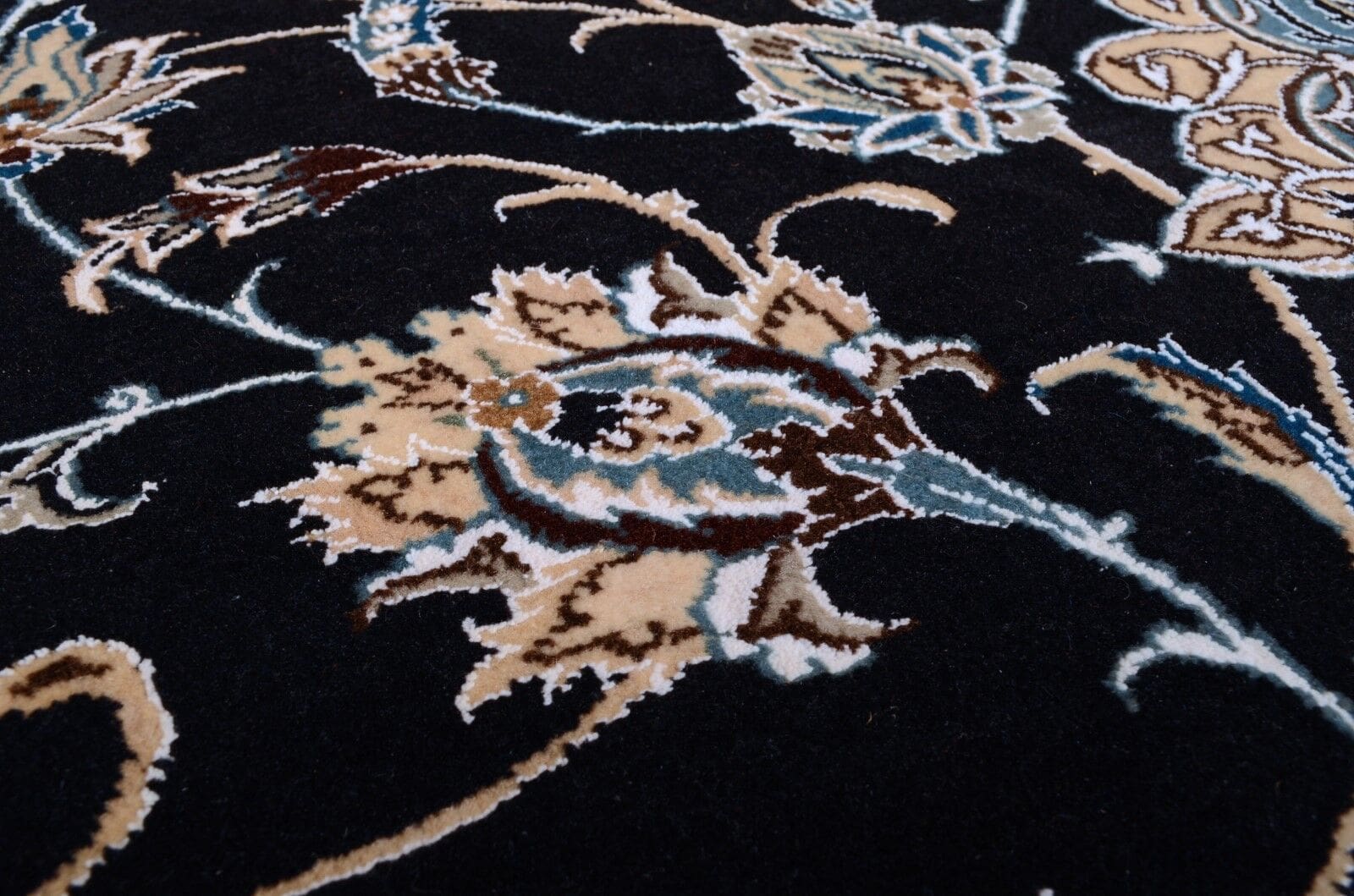 Ein herausragendes Merkmal dieses Teppichs ist seine hohe Knotendichte, die für die Feinheit und Detailtreue der Muster sorgt. Ein Teppich der Nain-Kategorie zeichnet sich oft durch 300.000 – 400.000 Knoten pro Quadratmeter aus, wodurch die Muster unglaublich lebendig und klar erstrahlen. Darüber hinaus ist die Pflege von Schurwollteppichen vergleichsweise unkompliziert: Regelmäßiges Ausklopfen und Staubsaugen halten den Teppich in einem hervorragenden Zustand und bewahren seine Farben und Strukturen über Jahre hinweg.