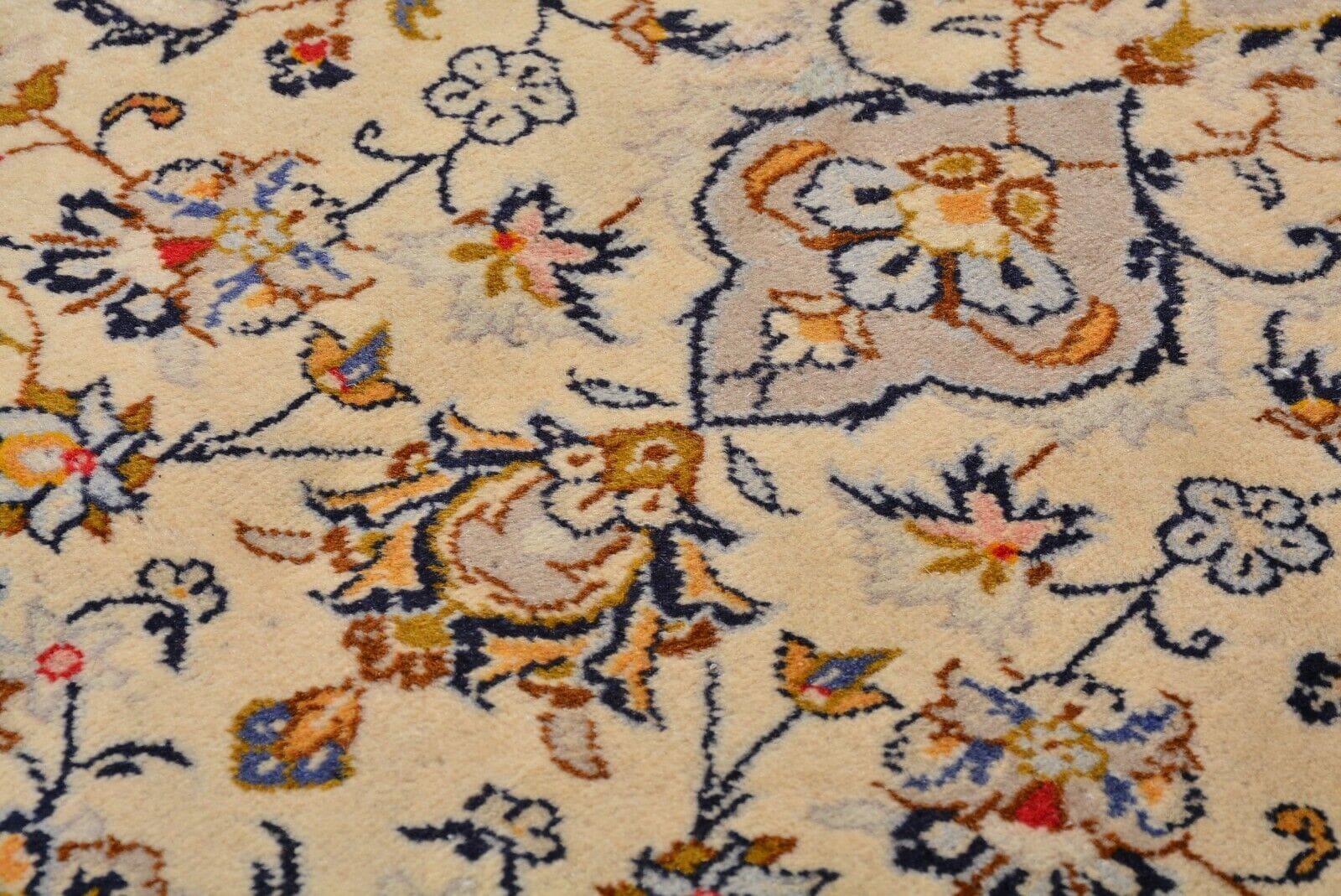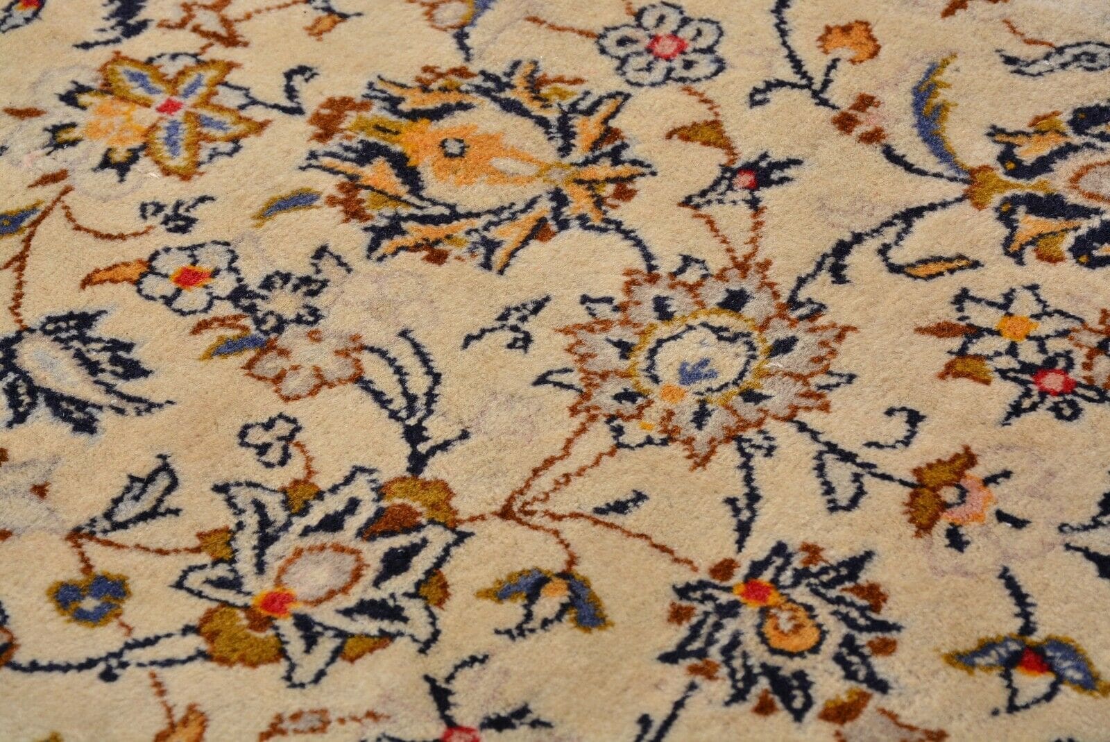 Der Teppich befindet sich in einem neuwertigen Zustand und besticht durch seine beeindruckende Knotendichte, die für eine hohe Qualität und Langlebigkeit spricht. Die feinen, handgeknüpften Knoten sind ein Zeichen für die exzellente Handwerkskunst, die in der Region Kashan seit Jahrhunderten praktiziert wird. Diese traditionelle Technik sorgt dafür, dass der Teppich sowohl ästhetisch ansprechend als auch strapazierfähig ist.