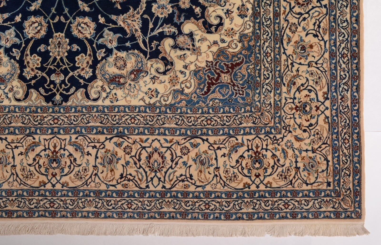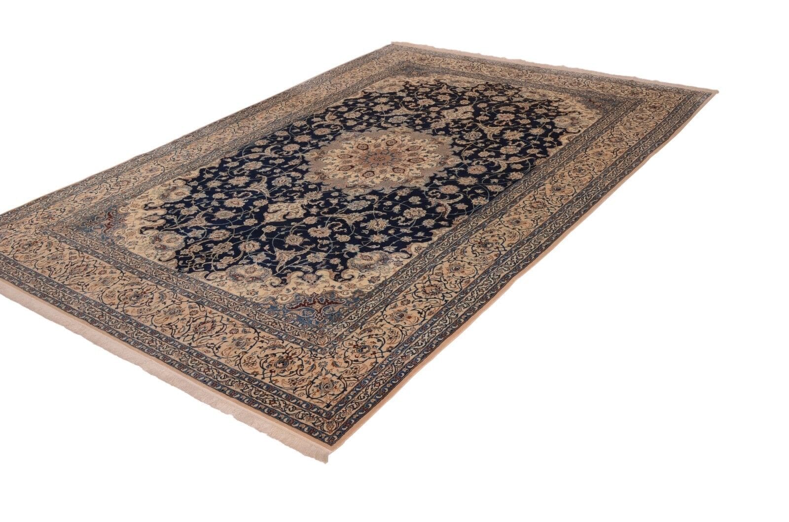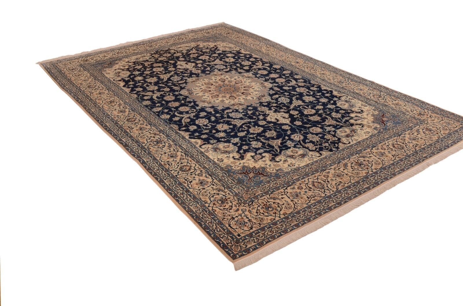 Handgeknüpfter Orientteppich Perser Nain 6 La in Blau, 300×204 cm, aus sehr feiner Schurwolle