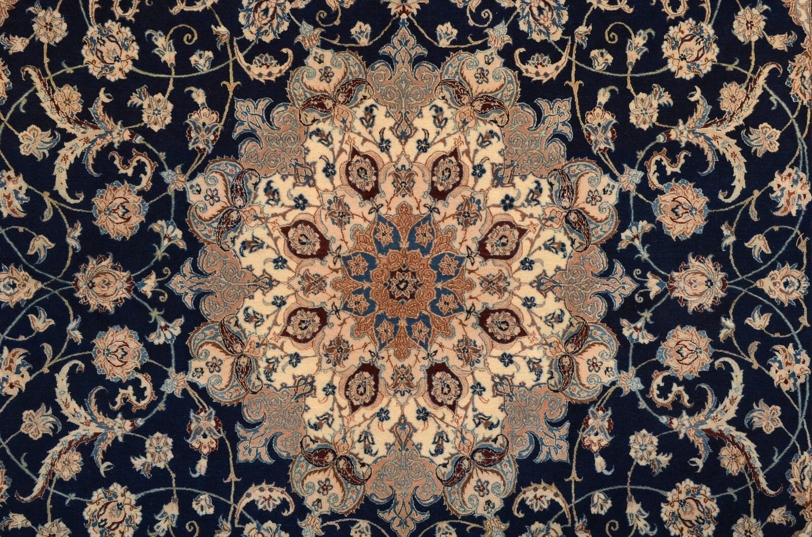 Der Nain Teppich stammt aus der gleichnamigen Stadt in der Provinz Isfahan im Iran, die für ihre faszinierende Teppichtradition bekannt ist. Nain ist berühmt für ihre exquisiten Teppiche, die oft mit feinen Woll- und Seidenmaterialien in traditionellen Mustern und Farben geknüpft werden. Diese Region hat eine lange Geschichte in der Teppichkunst, die bis ins 16. Jahrhundert zurückreicht. Nain Teppiche zeichnen sich durch ihre Helligkeit und Farbvielfalt aus, wobei die Verwendung von Blau- und Beigetönen besonders beliebt ist. Die Stadt Nain ist ein wichtiges Zentrum für die Teppichproduktion und wird häufig als ein Hotspot für Sammler von handgeknüpften Teppichen angesehen.