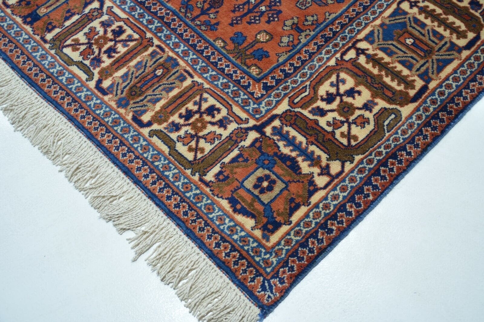 Die Verwendung traditioneller Knüpftechnik und die Auswahl hochwertiger Materialien machen diesen Teppich zu einer lohnenden Investition sowohl in Bezug auf Ästhetik als auch auf Funktionalität. Er kann in verschiedenen Stilen eingesetzt werden, vom rustikalen Landhausstil bis hin zu modern-minimalistischen Innenräumen.