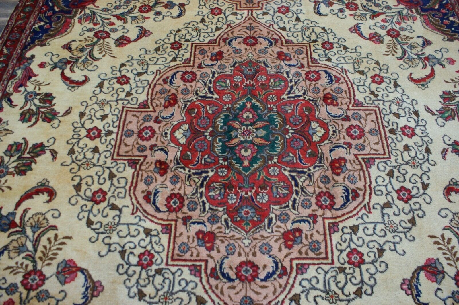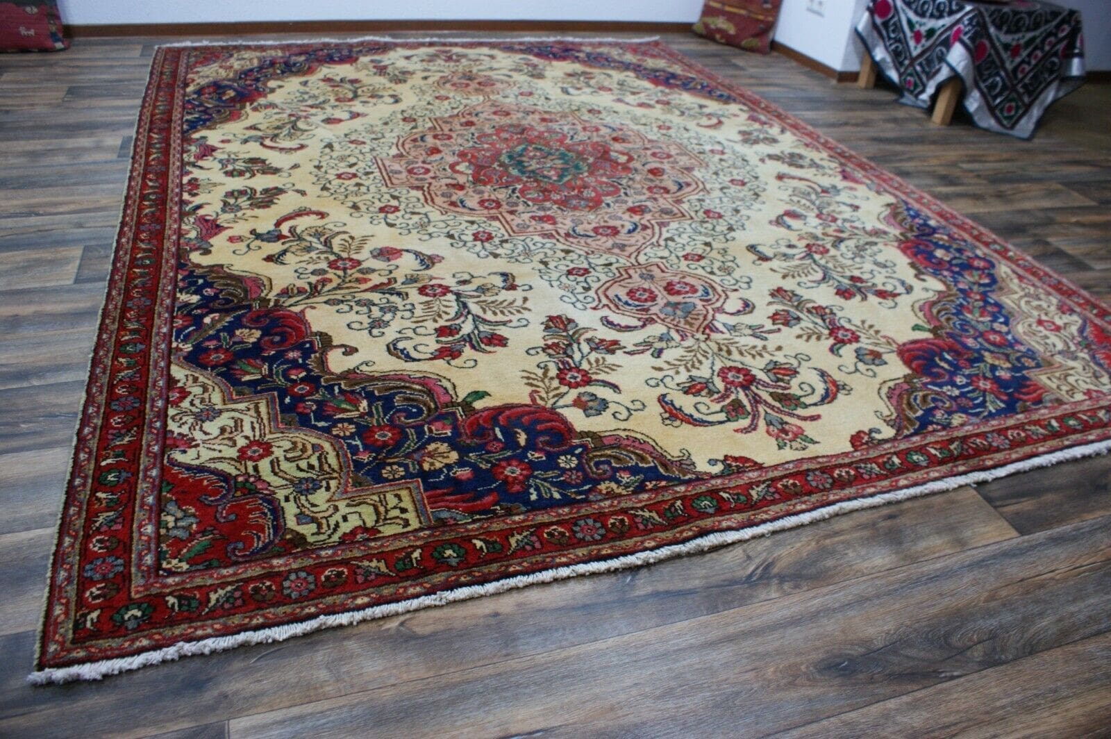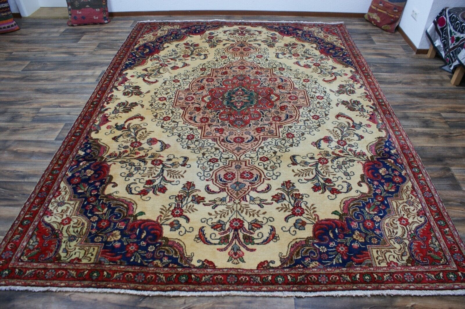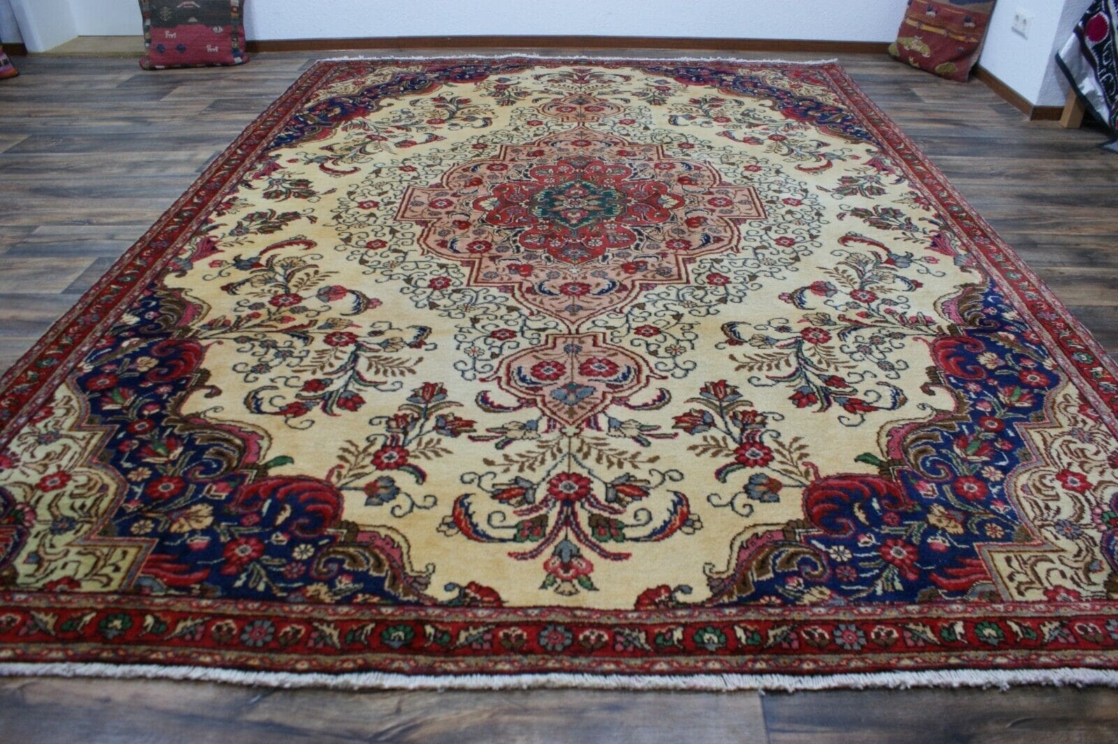 Handgeknüpfter original Teppich Tabriz | Größe: ca. 315 x 230 cm | Zustand: Gebraucht, in gutem Zustand | Material: 90% Wolle, 10% Baumwolle | Knotendichte: Hochwertige Verarbeitung | Muster: Traditionell orientalisch | Besonderheiten: Für Fußbodenheizung geeignet | Florhöhe: 1 cm | Farbe: Mehrfarbig | Professionell gereinigt und sofort auslegbar