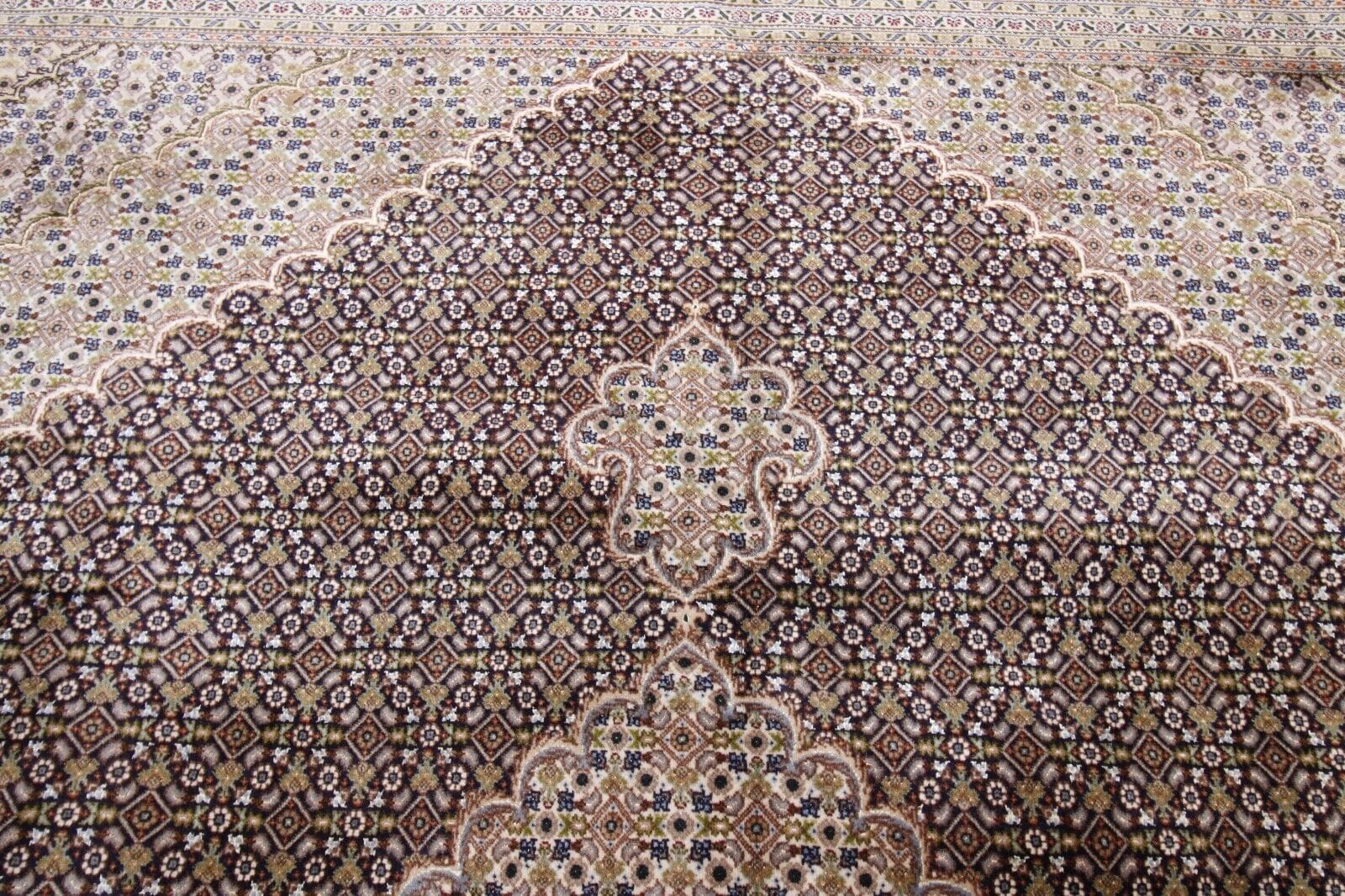 Handgeknüpfter Täbriz Mahi Teppich | Größe: 400 x 302 cm | Knotendichte: 50 Raj | Material: 100% Baumwolle, 100% Seide, 100% Wolle | Zustand: Top Zustand, gewaschen | Muster: Einfarbig | Stil: Orientalisch | Für Fußbodenheizung geeignet | Rutschsicher und umweltfreundlich | Original, hergestellt in den 1970er Jahren
