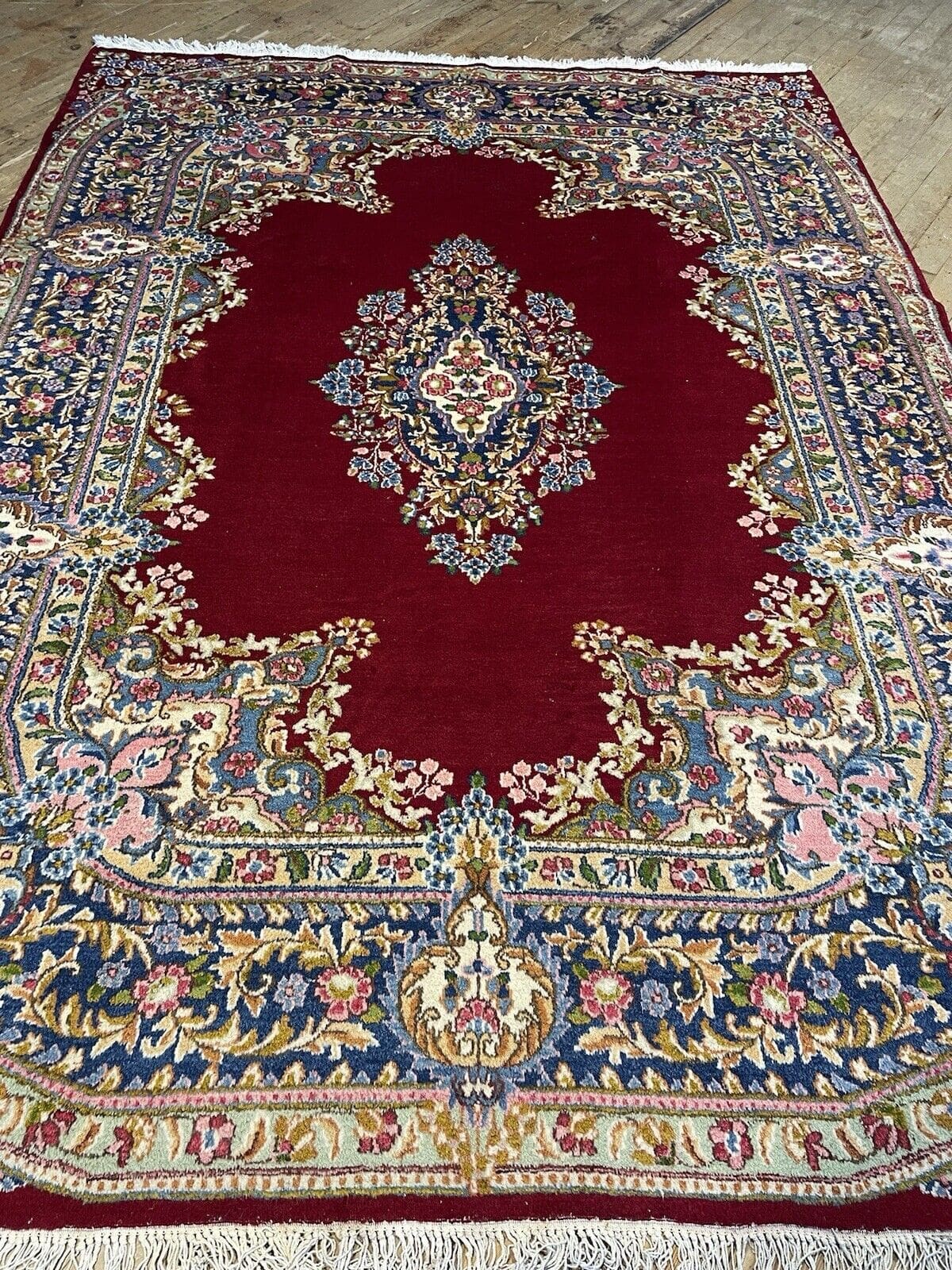 Kerman Perserteppich – Elegantes Medaillon-Muster in leuchtendem Rot