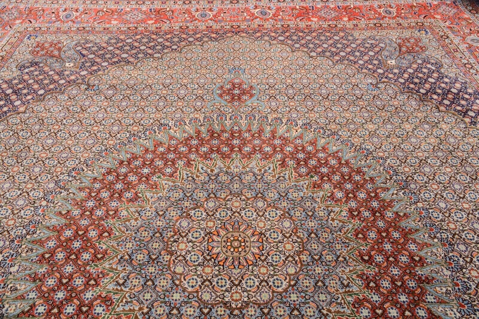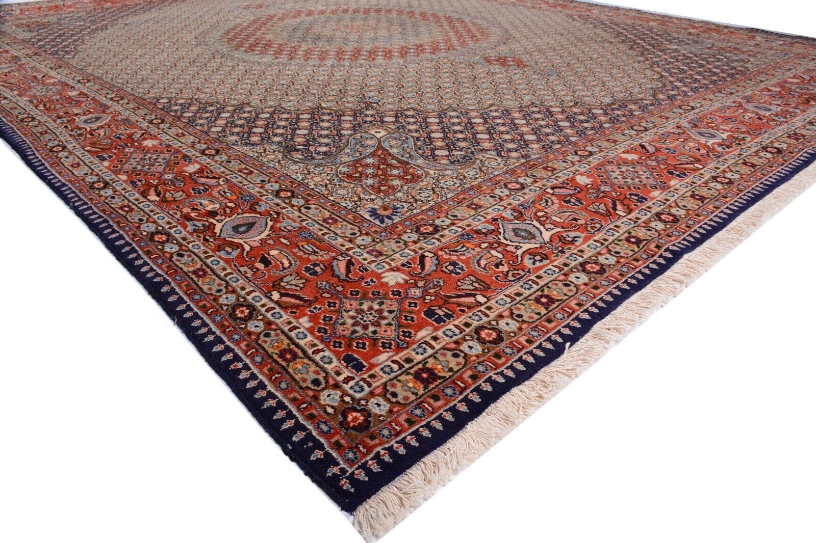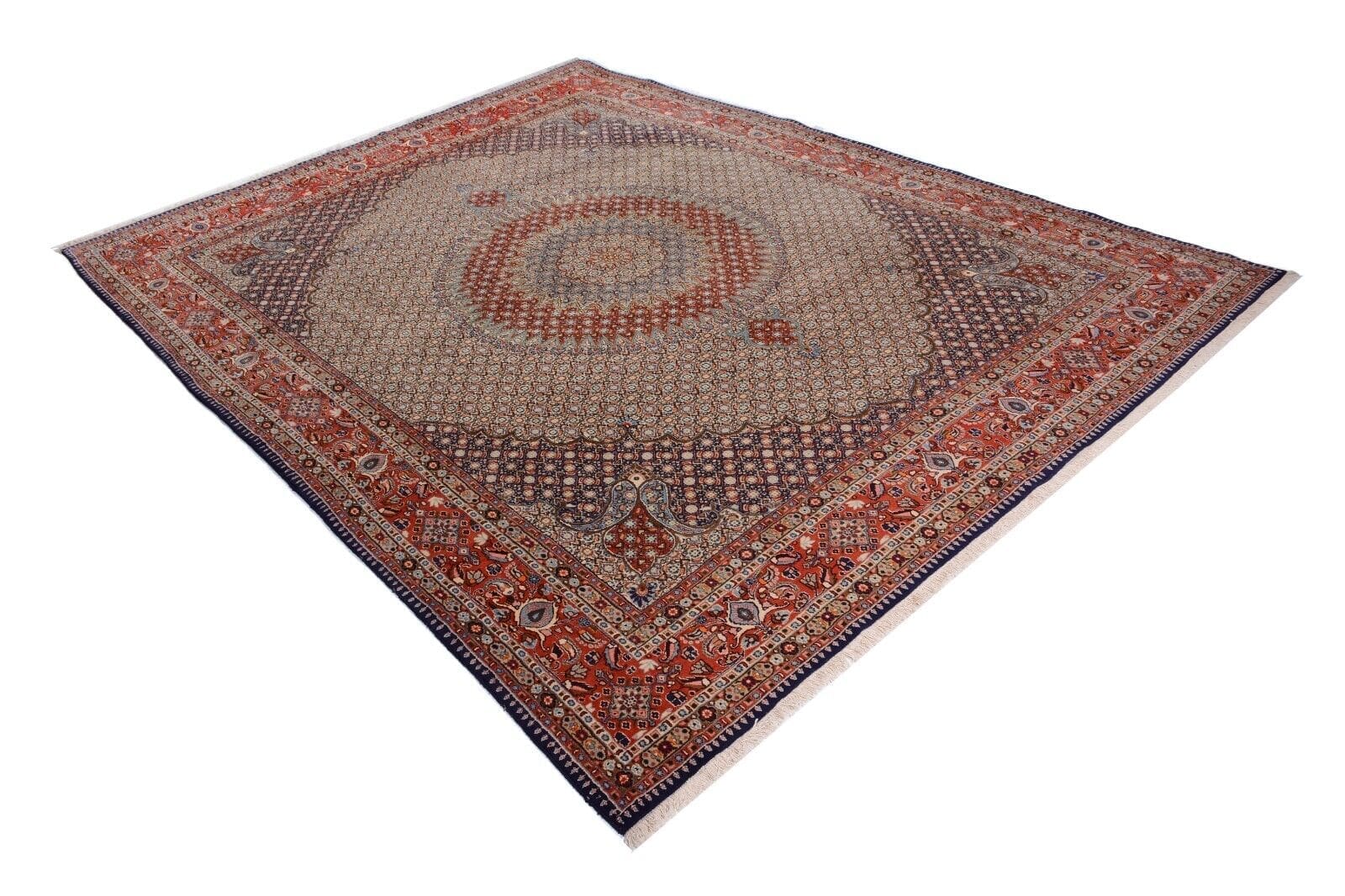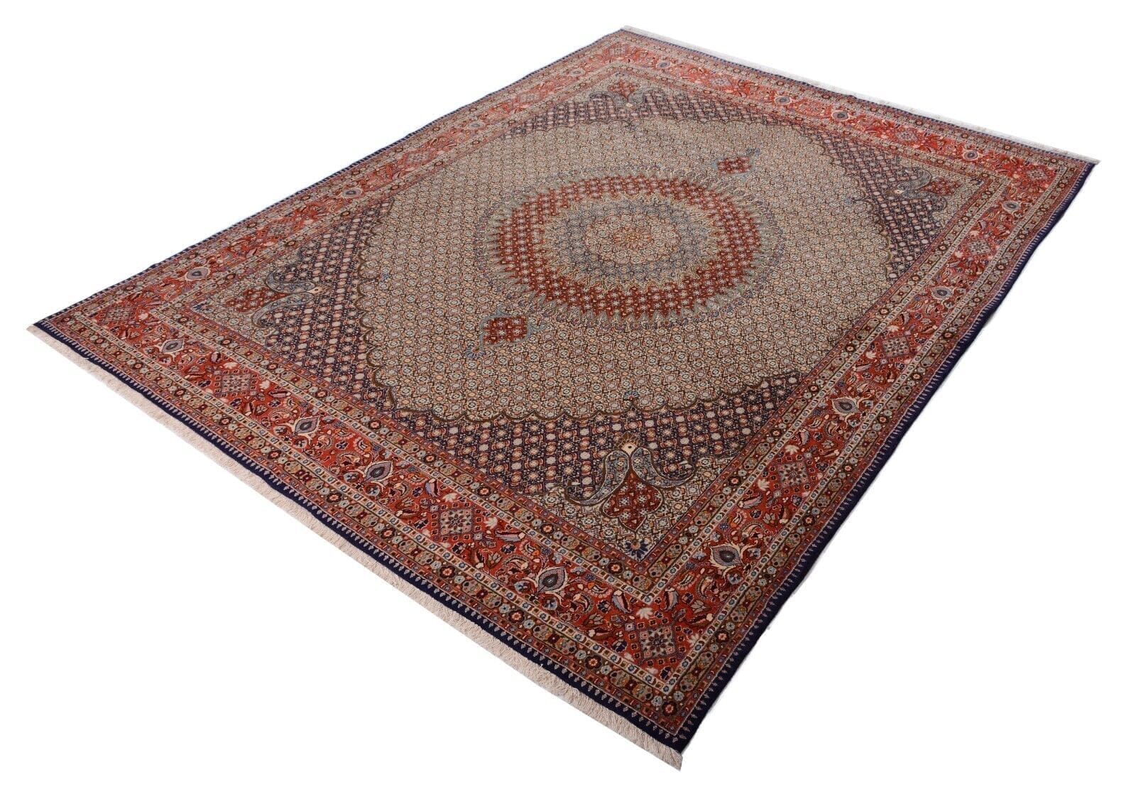 Handgeknüpfter Perser Teppich Moud | Größe: 373 x 289 cm | Knotendichte: 375.000 Knoten/m² | Material: 100% Schurwolle | Zustand: Neu, perfekt | Herkunft: Nordost-Persien | Farbe: Beige | Dicke: ca. 10 mm | Für Fußbodenheizung geeignet | Stil: Traditionell Orientalisch/Persisch