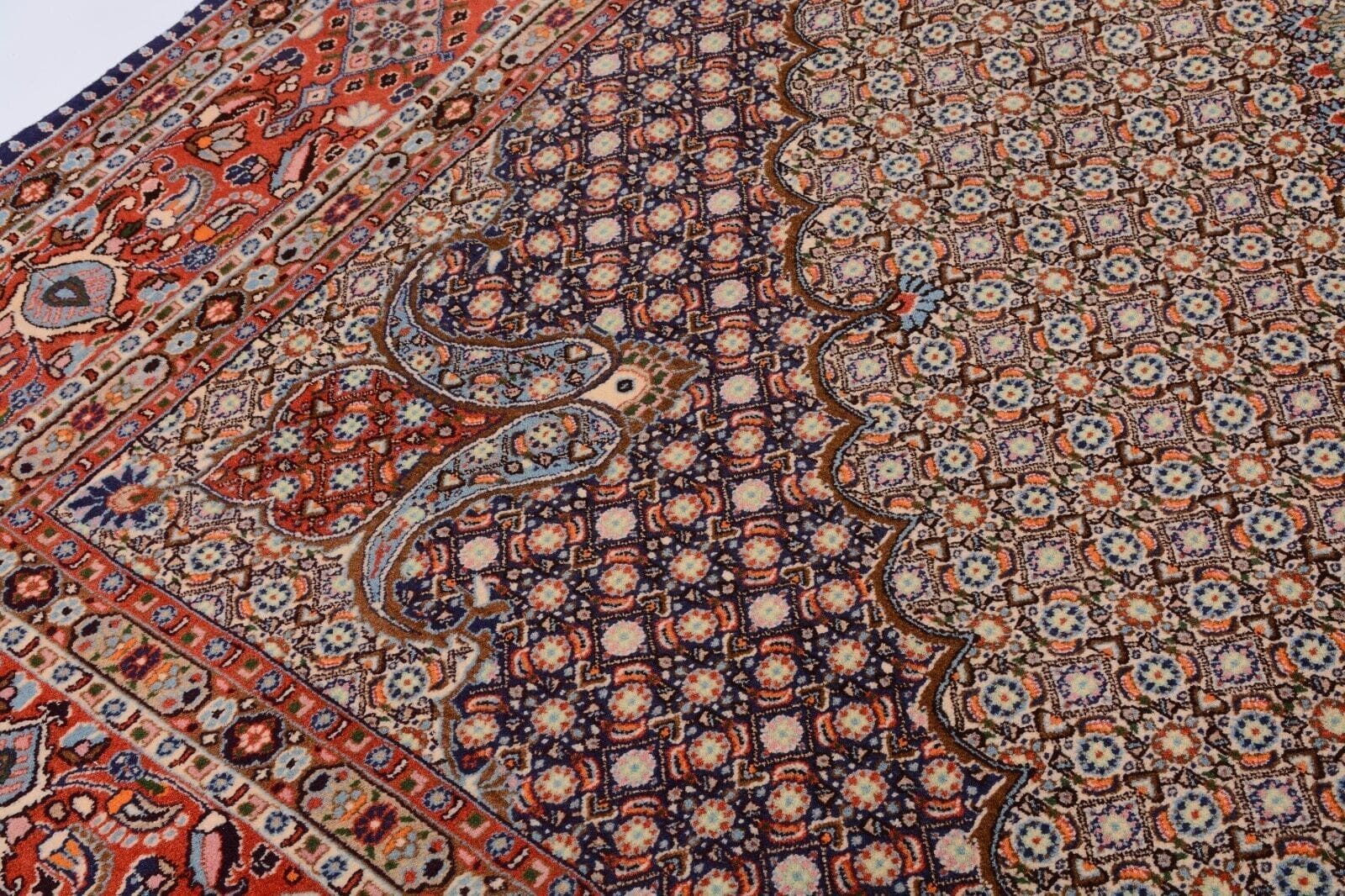 Zusammenfassend lässt sich sagen, dass der Moud feine handgeknüpfte Orientteppich nicht nur ein praktischer Bodenbelag ist, sondern auch ein Stück Geschichte und Kultur in Ihr Zuhause bringt. Er verkörpert die Wurzeln seines Handwerks und die reiche Tradition des Teppichknüpfens in der Region Moud. Lassen Sie sich von der Schönheit und Qualität dieses einzigartigen Teppichs verzaubern und investieren Sie in ein Stück, das Generationen überdauern kann.