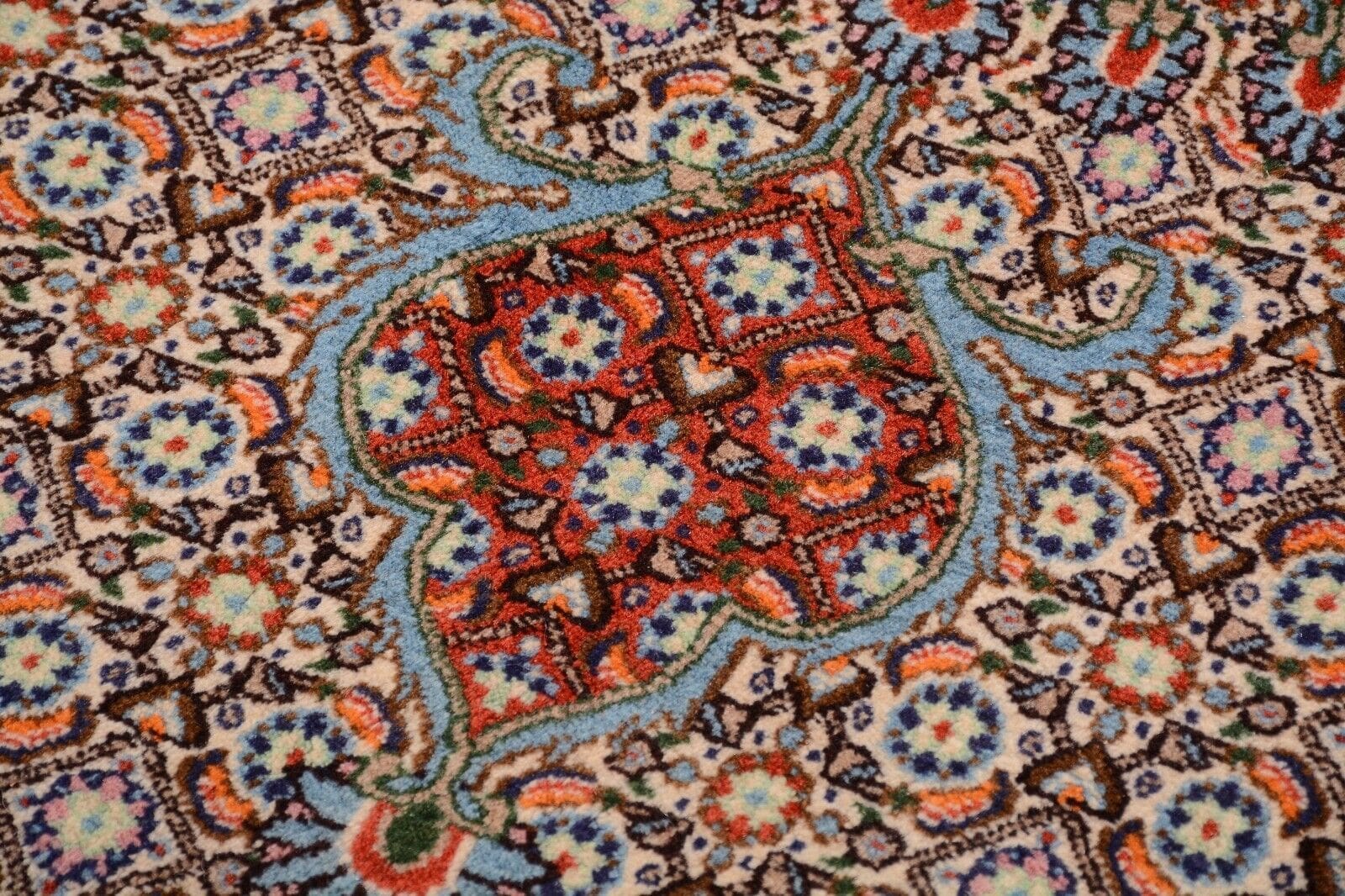 Der Moud Teppich stammt aus der Region Moud, die für ihre Tradition im Teppichknüpfen bekannt ist. Moud ist eine kleine Stadt in der Provinz Khorasan im Nordostiran, eine Region, die seit Jahrhunderten für ihre hochwertigen Teppiche berühmt ist. Die Teppichknüpferei in Moud hat eine lange Geschichte und ist für ihre feinen Muster und die detaillierte Verarbeitung bekannt. Die Kunst des Teppichknüpfens wurde hier von Generation zu Generation weitergegeben, und die Handwerker in dieser Region haben ein tiefes Verständnis für die Verwendung von Farben und Motiven entwickelt.