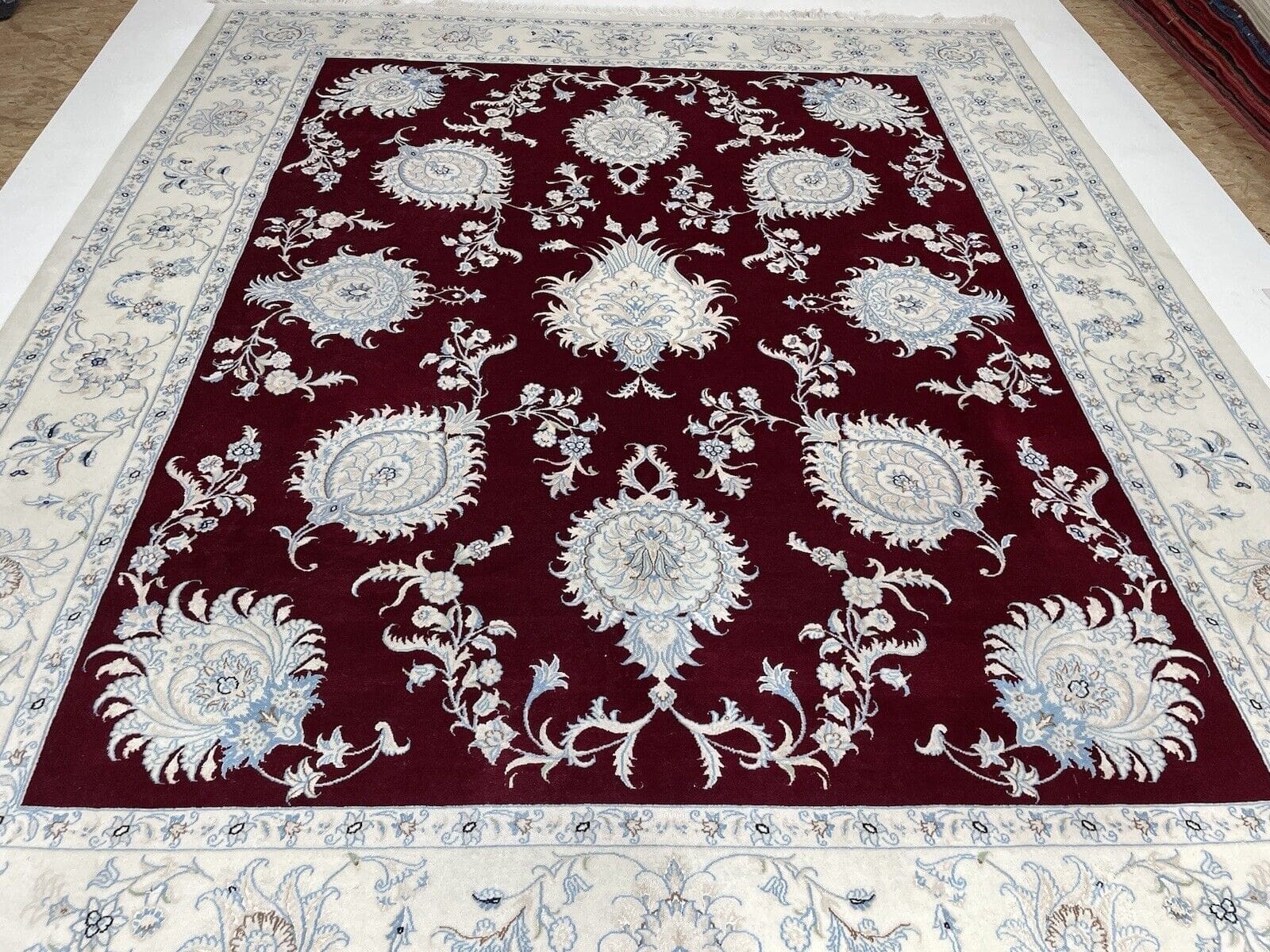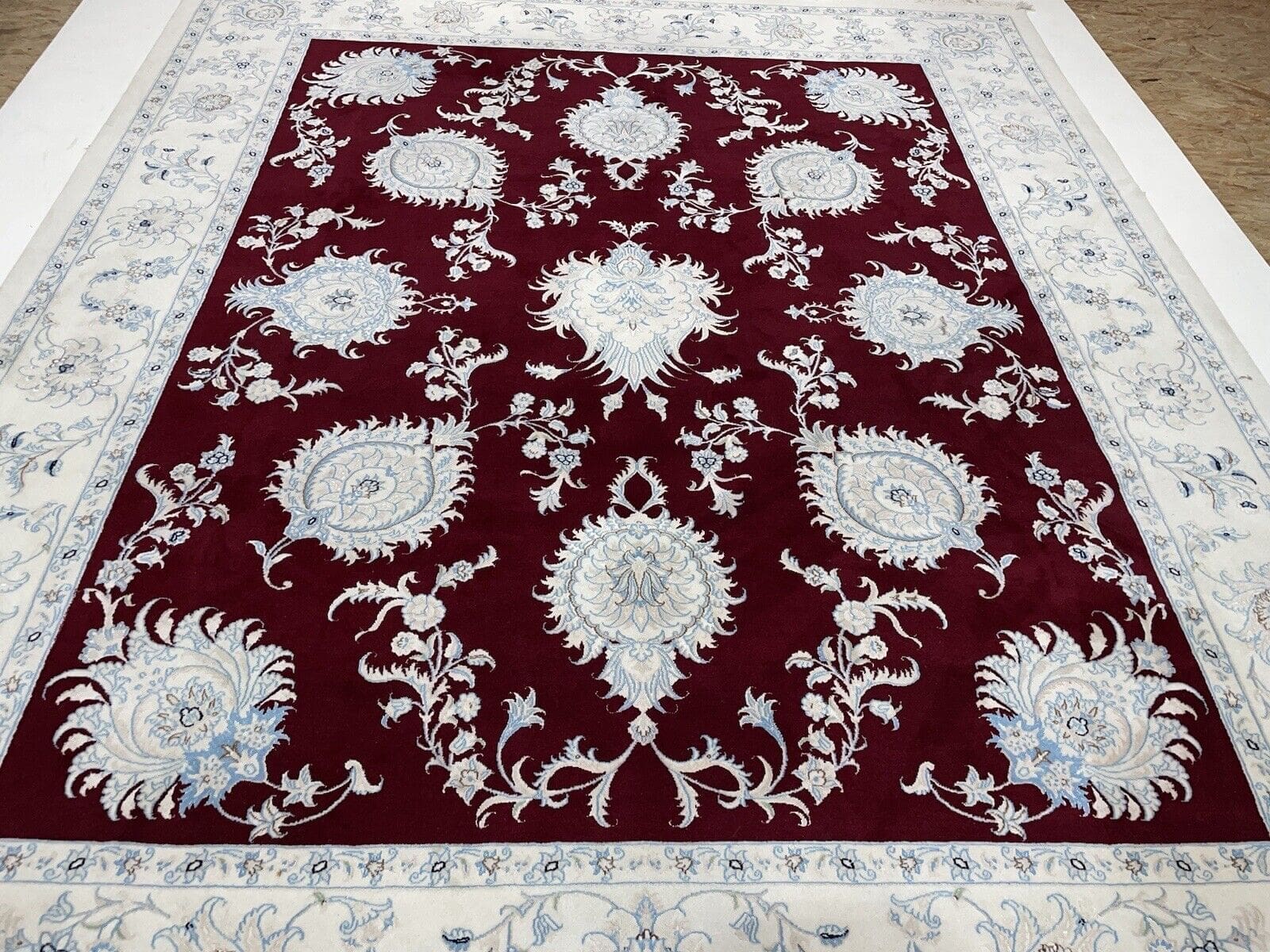 Nain 6LA Super Fein Perserteppich 300×250 cm – 500.000 Knoten/m² – Dunkel Rot – Handgeknüpft – Perserteppich