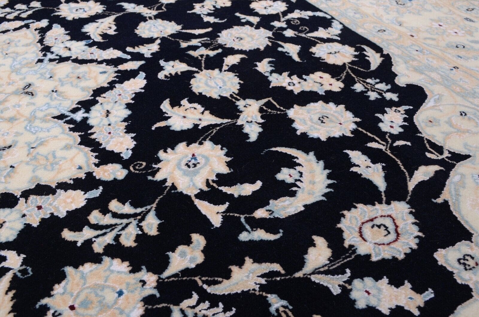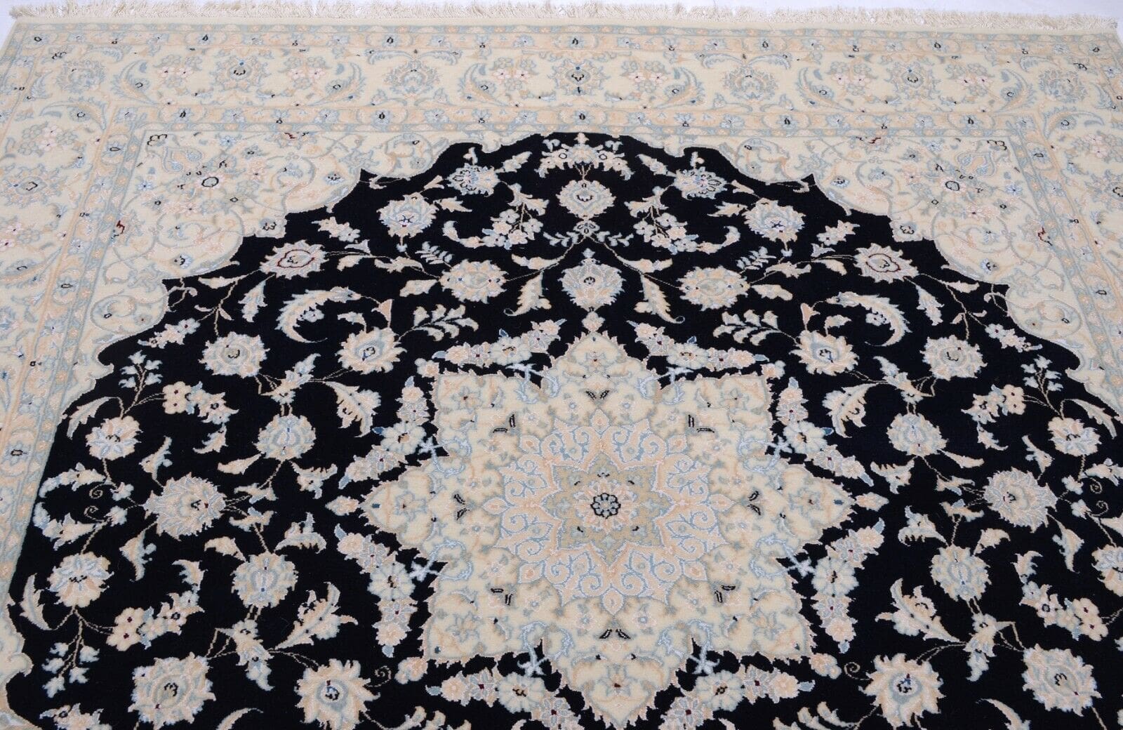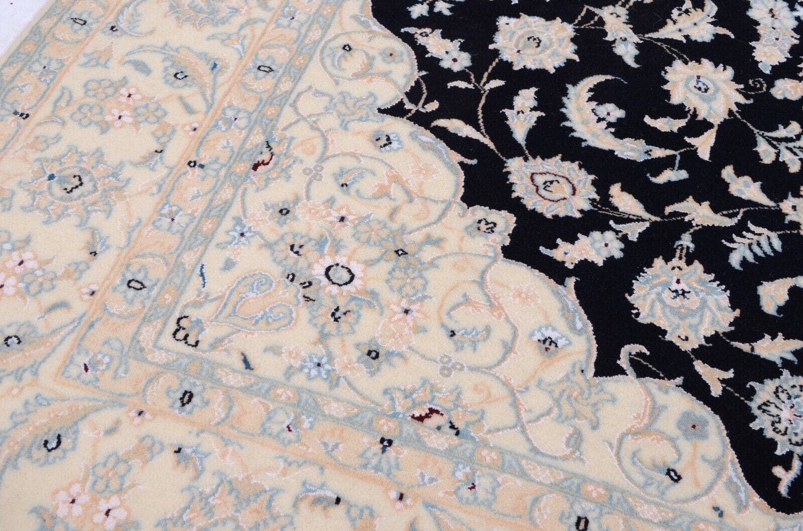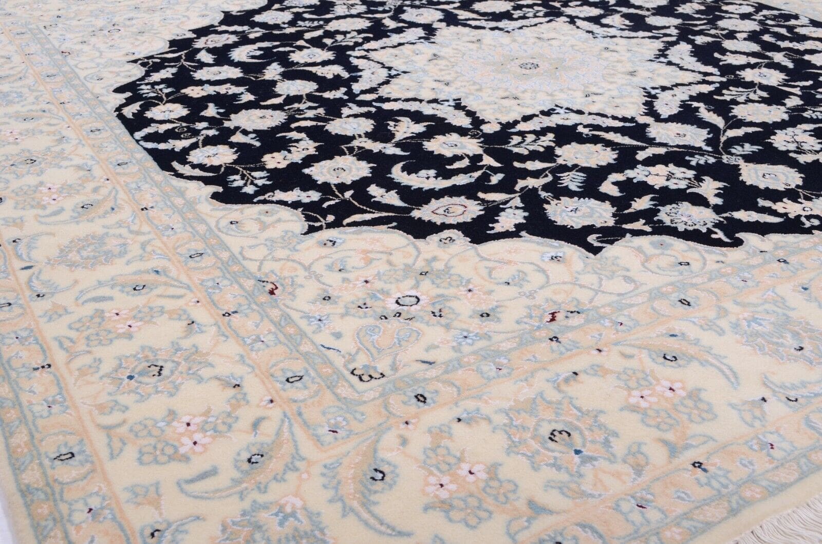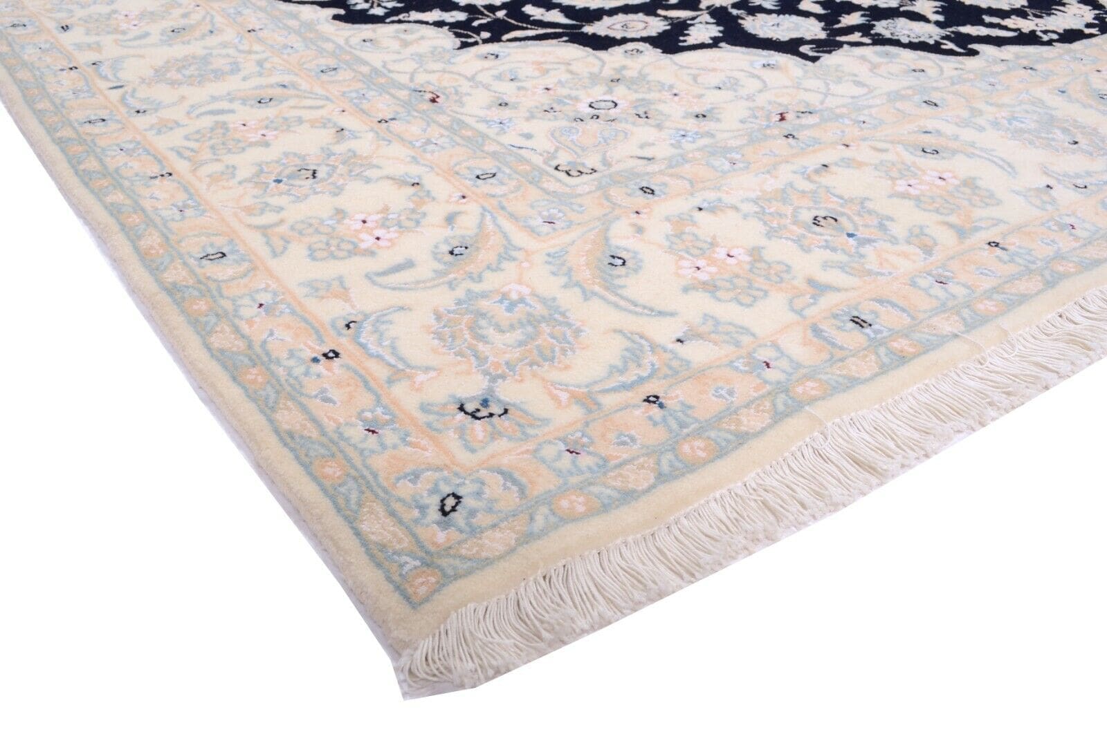 Handgeknüpfter Nain 9 La Teppich | Größe: 202 x 200 cm | Knotendichte: 450.000 Knoten/m² | Material: 95% Schurwolle, 5% Seide | Zustand: Neu, perfekt | Herkunft: Persien | Muster: Floralmotiv mit Medaillon | Dicke: ca. 10 mm | Gewicht: 3 kg/m² | Geeignet für Fußbodenheizung | Stil: Traditionell orientalisch/persisch