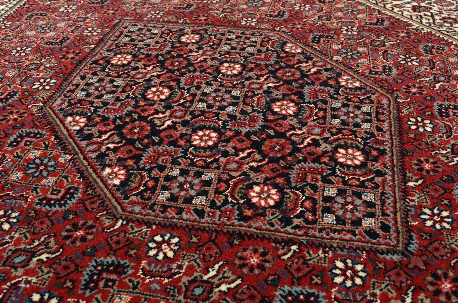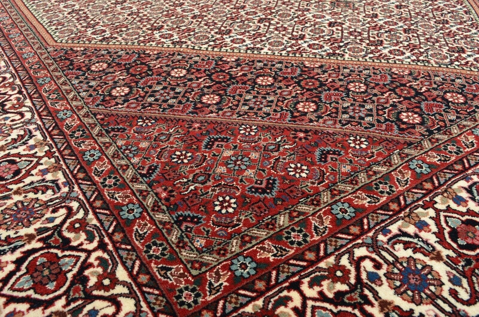 Feiner Bidjar Teppich | Knotendichte: 300.000 Knoten/m² | Material: 98% Schurwolle, 2% Seide | Größe: 299 x 205 cm | Zustand: Neu | Herkunft: Indien | Florhöhe: 12 mm | Muster: Orientalisch | Für Fußbodenheizung geeignet | Stil: Traditionell Orientalisch/Persisch