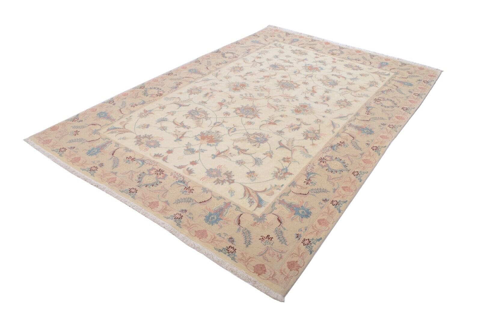 Neuester handgeknüpfter Perserteppich Tabriz 50 Rag 280 x 197 cm mit floralem Design in Beige
