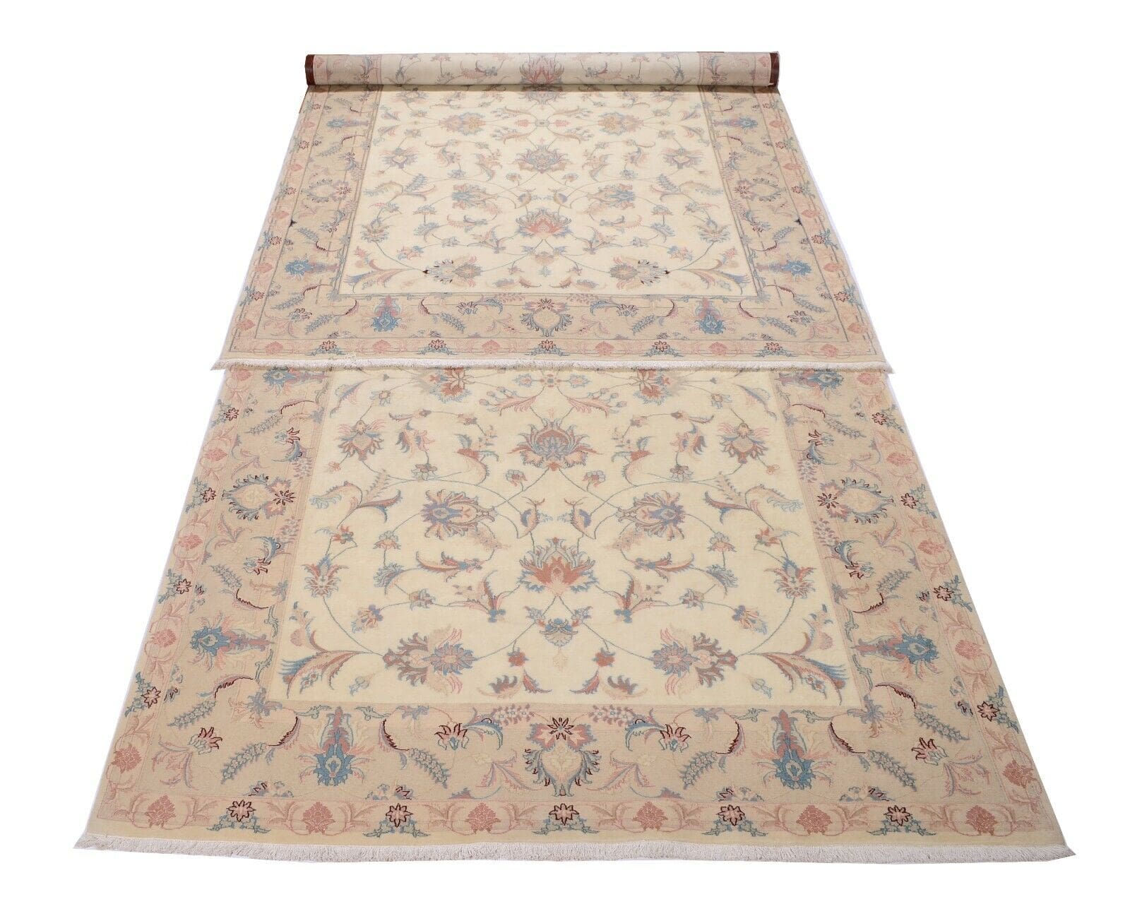 Der handgeknüpfte Perserteppich Tabriz ist ein hervorragendes Beispiel traditioneller iranischer Teppichkunst. Mit seiner exquisiten Knotentechnik und dem eleganten floralen Design in sanften Beigetönen bringt dieser Teppich zeitlose Eleganz in Ihr Zuhause. Die detailreiche Verarbeitung sowie die Verwendung hochwertiger Materialien machen diesen Teppich nicht nur zu einem prachtvollen Wohnaccessoire, sondern auch zu einem langlebigen Kunstwerk, das Generationen überdauern kann.