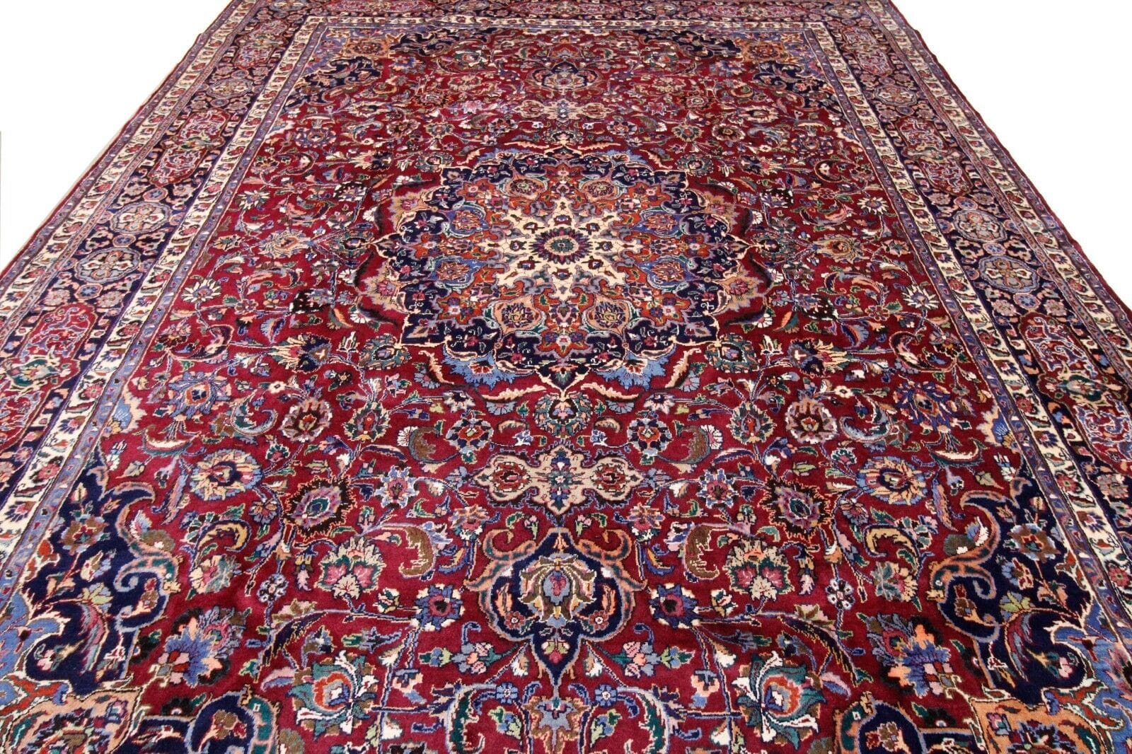 Original Handgeknüpfter Perserteppich Mashad | Größe: 406 x 296 cm | Zustand: Sehr guter Zustand, neuwertig | Knotendichte: Hoch | Material: 100% Wolle und 100% Baumwolle | Muster: Orientalisch mit Blumenmotiv | Herkunft: Iran | Geeignet für: Alle Zimmer | Besonderheiten: Antirutsch, für Fußbodenheizung geeignet, leicht zu reinigen | Stil: Klassisch, 21. Jahrhundert