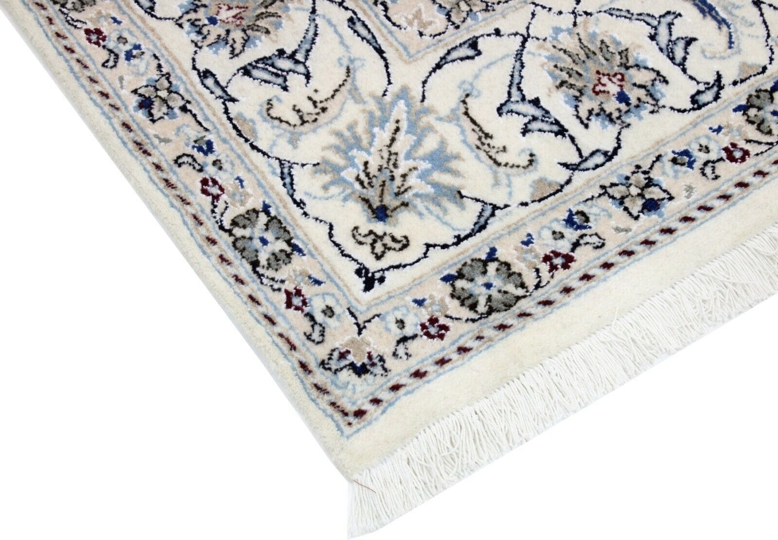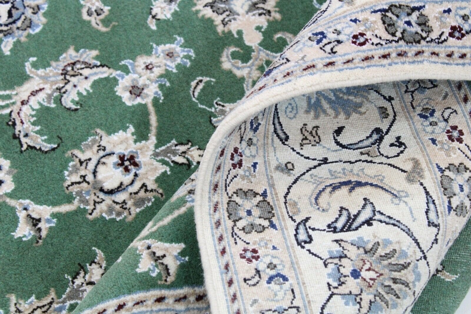 Der originale Nain Perserteppich hebt sich durch seine hohe Knotendichte, die Verwendung edler Materialien wie Wolle und Seide sowie durch die kunstvollen Muster ab. Jeder Teppich ist handgeknüpft und somit ein Unikat, das die Tradition und Kultur der persischen Teppichkunst widerspiegelt.
