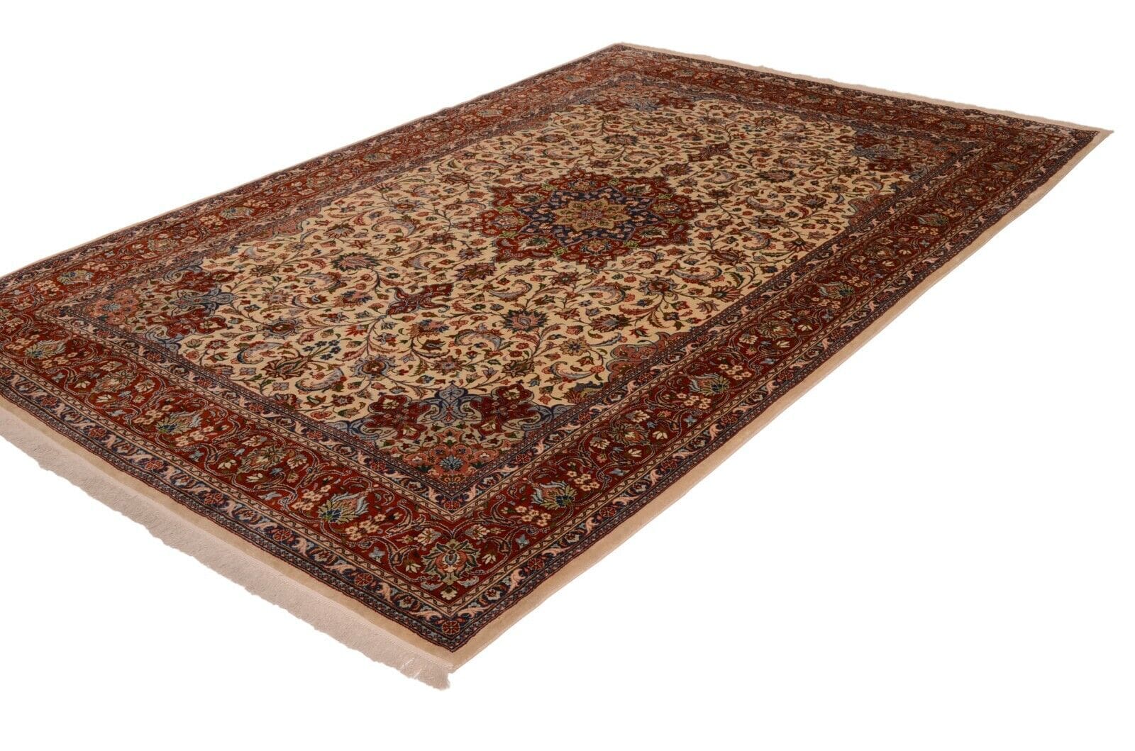 Handgeknüpfter Orientteppich Sarough Sherkat | Größe: 305 x 208 cm | Knotendichte: 350.000 Knoten/m² | Material: 100% Schurwolle | Kette: 100% Baumwolle | Zustand: Neu, unbenutzt | Herkunft: Persien | Muster: Floral mit Medaillon | Dicke: ca. 10 mm | Geeignet für Fußbodenheizung | Stil: Traditionell Persisch/Orientalisch