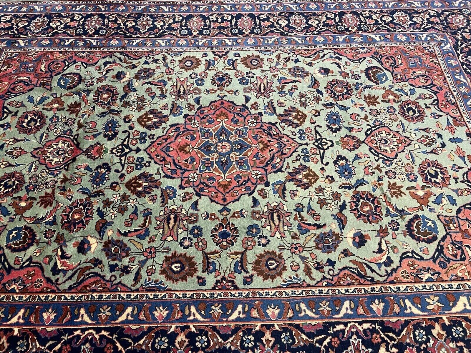 Seltener Perserteppich – Medaillon-Muster in lebendigem Grün