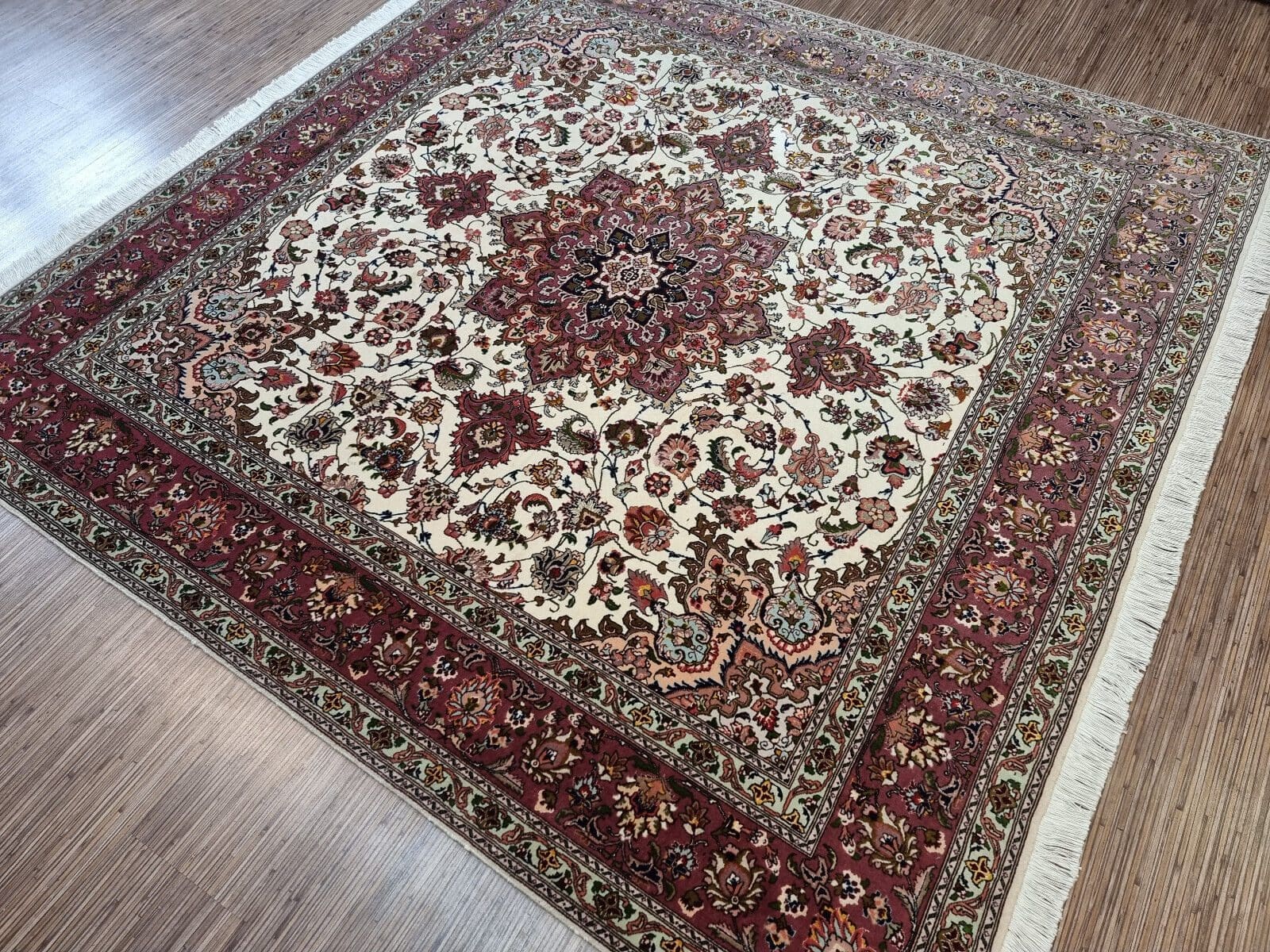 Wunderschöner Original Persischer Täbriz | Größe: 198×196 cm | Knotendichte: ca. 500.000 Knoten/m² | Material: Korkwolle auf Baumwolle | Zustand: Sehr gut | Muster: Orientalisch | Herkunft: Iran | Herstellungszeitraum: 1970-1979 | Stil: Orientalisch