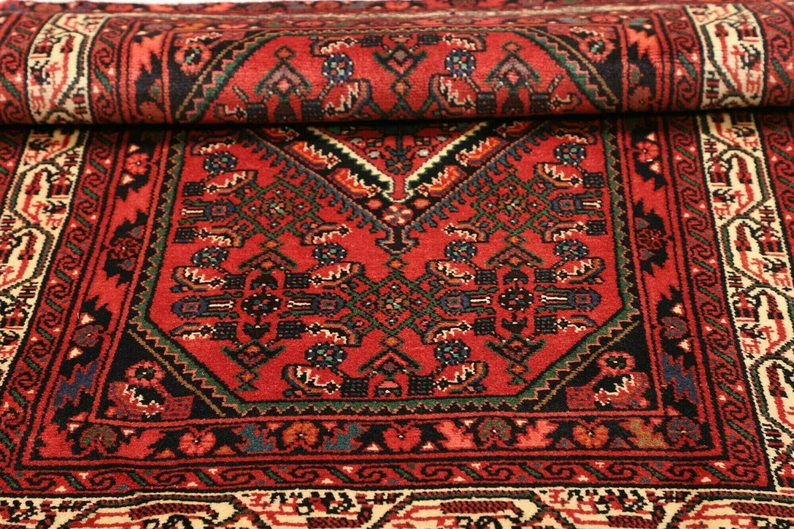 Ein herausragendes Merkmal des Hamadan Orientteppichs ist das Herati-Muster, das symbolisch für die reiche Kultur des Iran steht. Das Herati-Muster, auch als Fisch- oder Blütenmuster bekannt, besteht aus geschwungenen Linien und organischen Formen, die eine gewisse Lebendigkeit vermitteln. Diese Designs sind oft in harmonischen Farben gehalten, was sie sowohl zeitlos als auch modern erscheinen lässt.