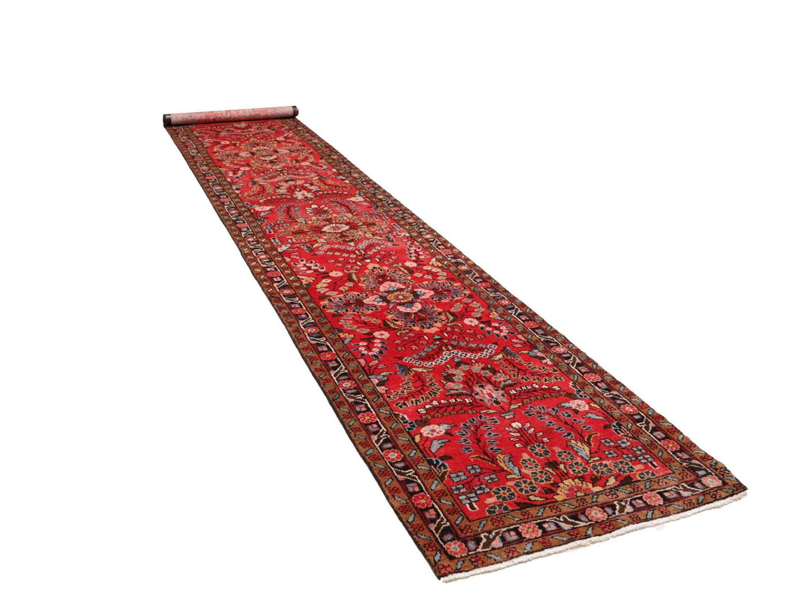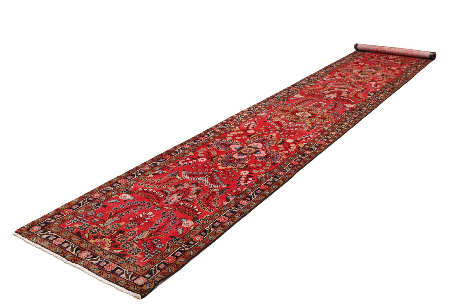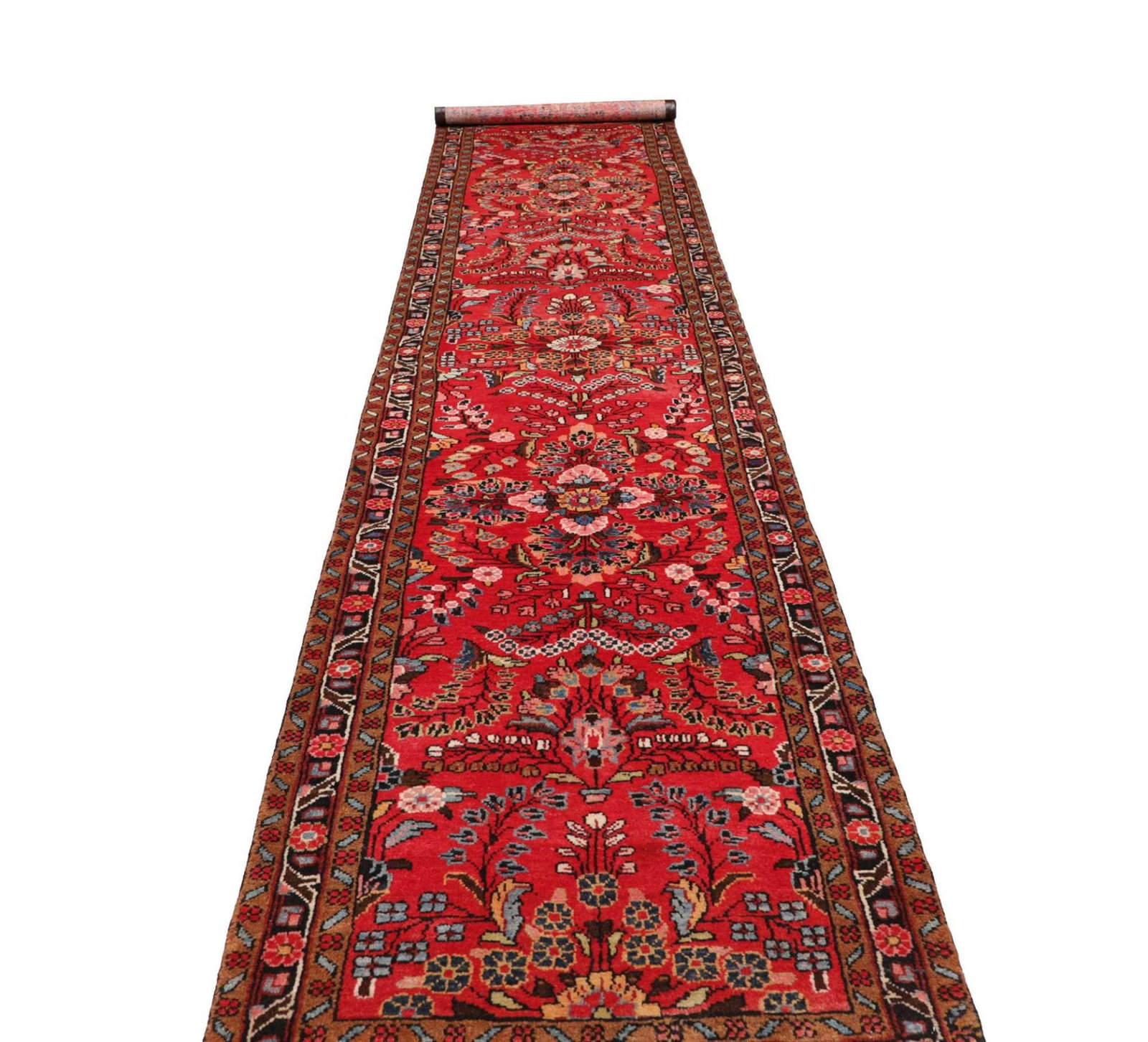 Hamadan Orientteppich 93 x 465 cm, Herati Muster, handgeknüpft