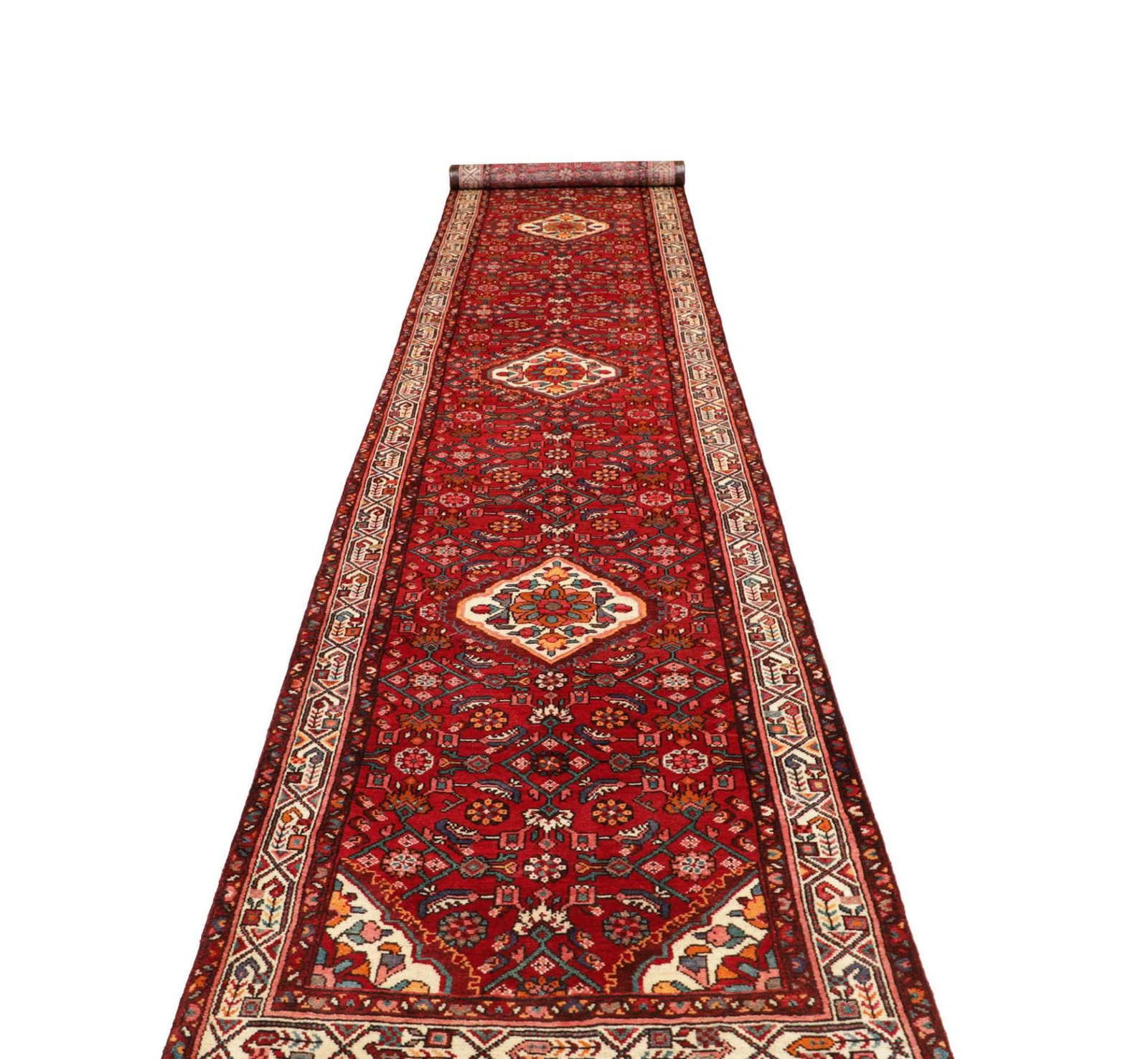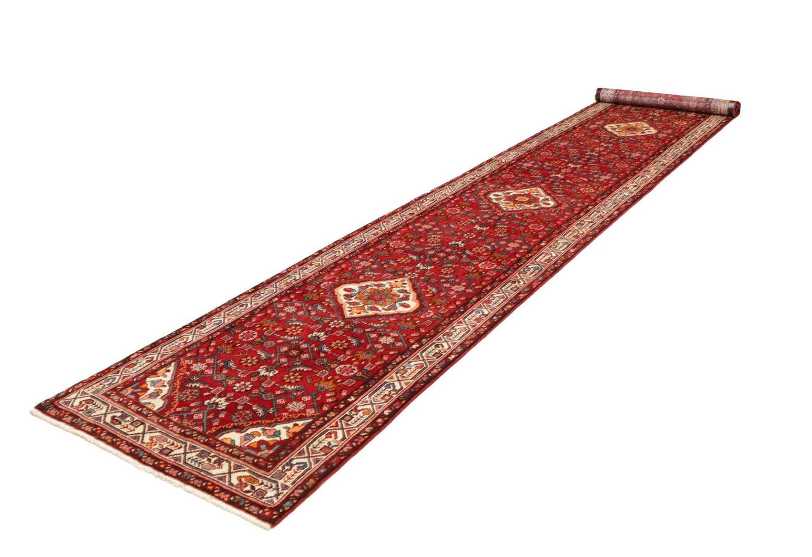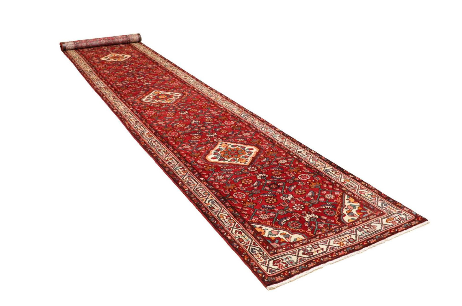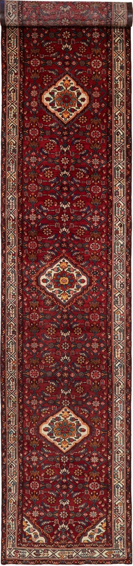 Hamadan Teppich 101 x 513cm, Herati-Muster, Schurwolle, handgeknüpft