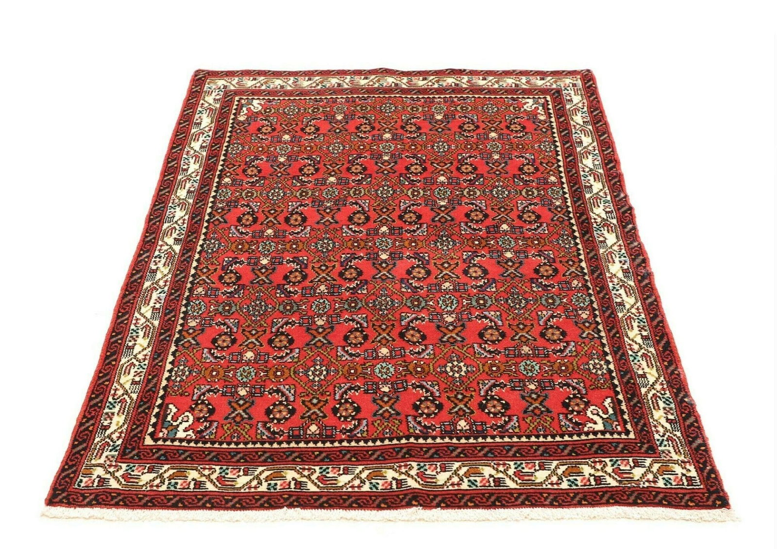 Hamadan Teppich 102 x 149 cm, Herati-Muster, Schurwolle, handgeknüpft