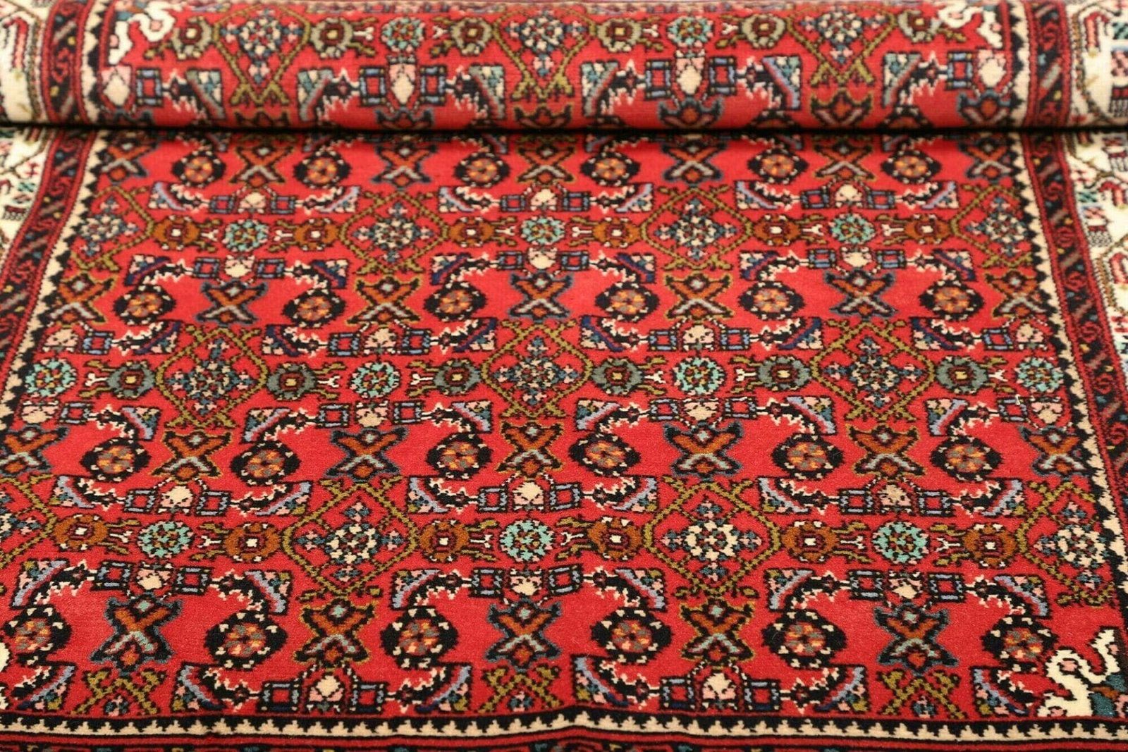 Der Hamadan Teppich stammt aus der gleichnamigen Region im Nordwesten Irans. Diese Region ist bekannt für ihre reiche Teppichknüpftradition und erstklassige Handwerkskunst. Hamadan selbst gilt als eines der ältesten noch bewohnten Gebiete der Welt, und die Teppiche, die dort produziert werden, spiegeln die tiefe kulturelle Geschichte und die Kunstfertigkeit der lokalen Handwerker wider. Teppiche aus Hamadan zeichnen sich oft durch komplexe Muster und kräftige Farben aus, die die Seele der iranischen Kultur einfangen.