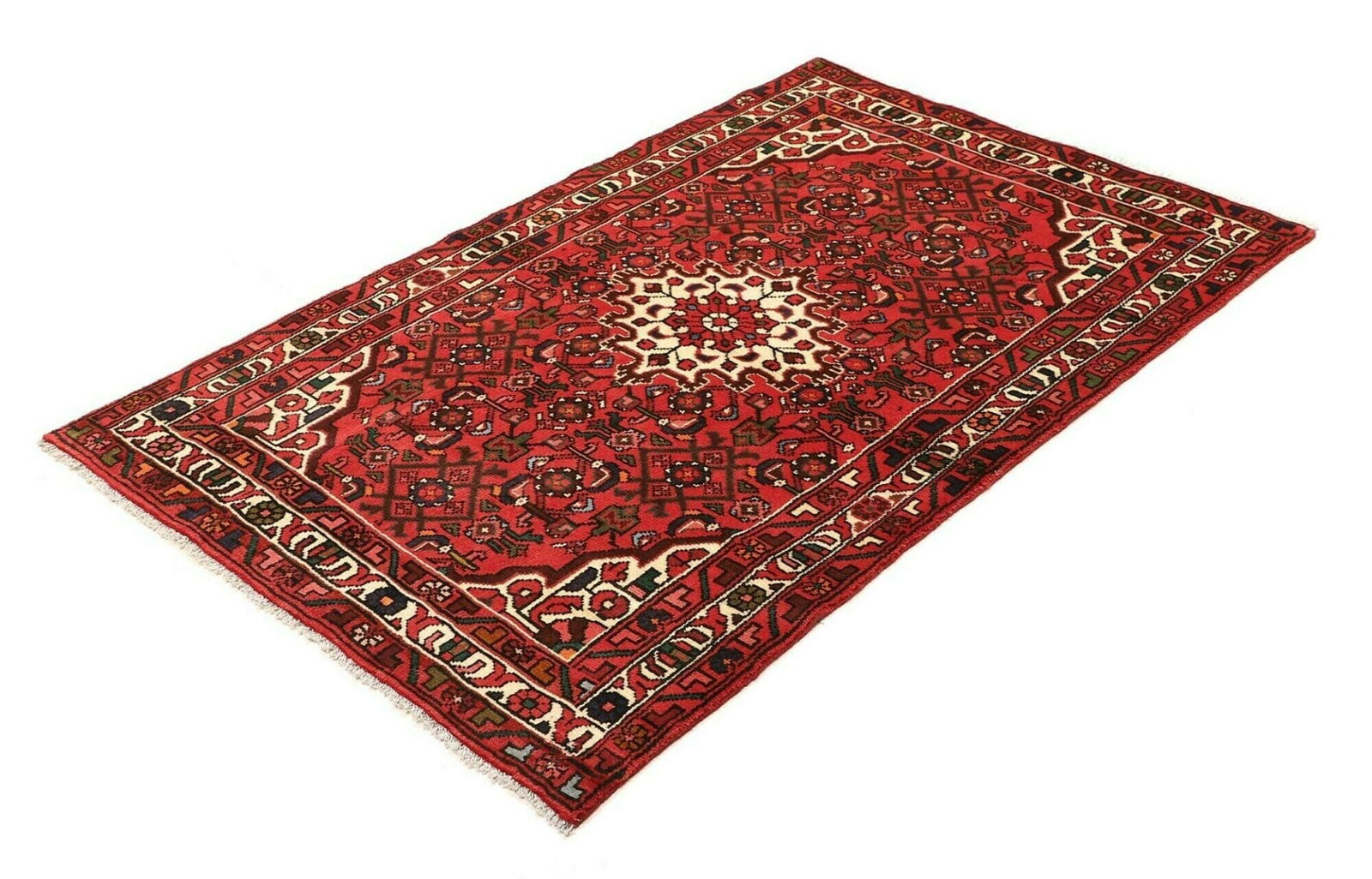 519$Ursprünglicher Preis war: 519$428$Aktueller Preis ist: 428$Handgeknüpfter Hamadan Teppich | Knotendichte: ca. 200.000 Knoten/m² | Flor: 100% Schurwolle | Kette: 100% Baumwolle | Größe: 103 x 158 cm | Muster: Herati und geometrische Formen | Herkunft: Iran | Zustand: Sehr gut