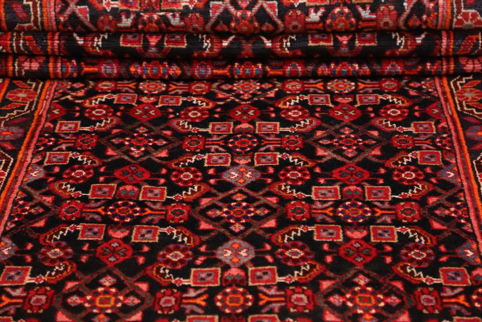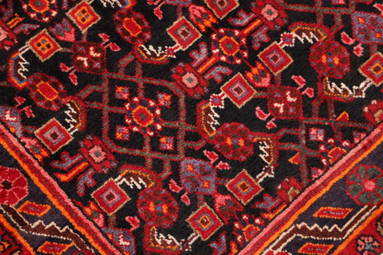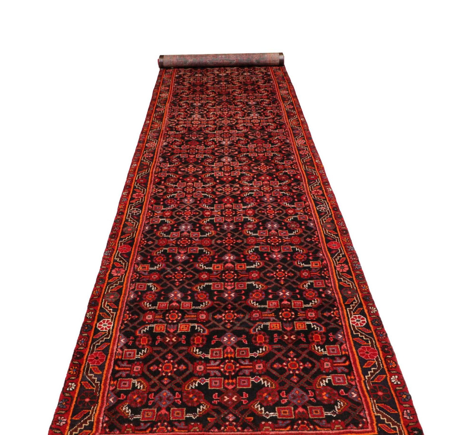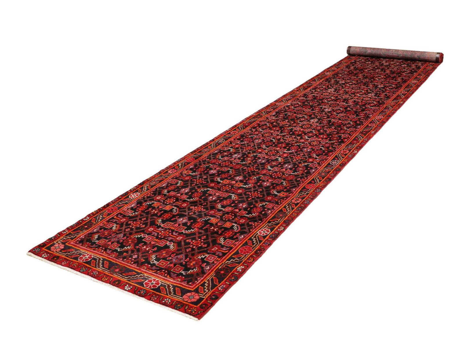 Hamadan Teppich | Größe: 103 x 510 cm | Knotendichte: ca. 200.000 Knoten/m² | Flor: 100% Schurwolle | Kette: 100% Baumwolle | Verarbeitung: Handgeknüpft | Herkunft: Iran | Muster: Herati und geometrische Designs | Zustand: Sehr gut erhalten