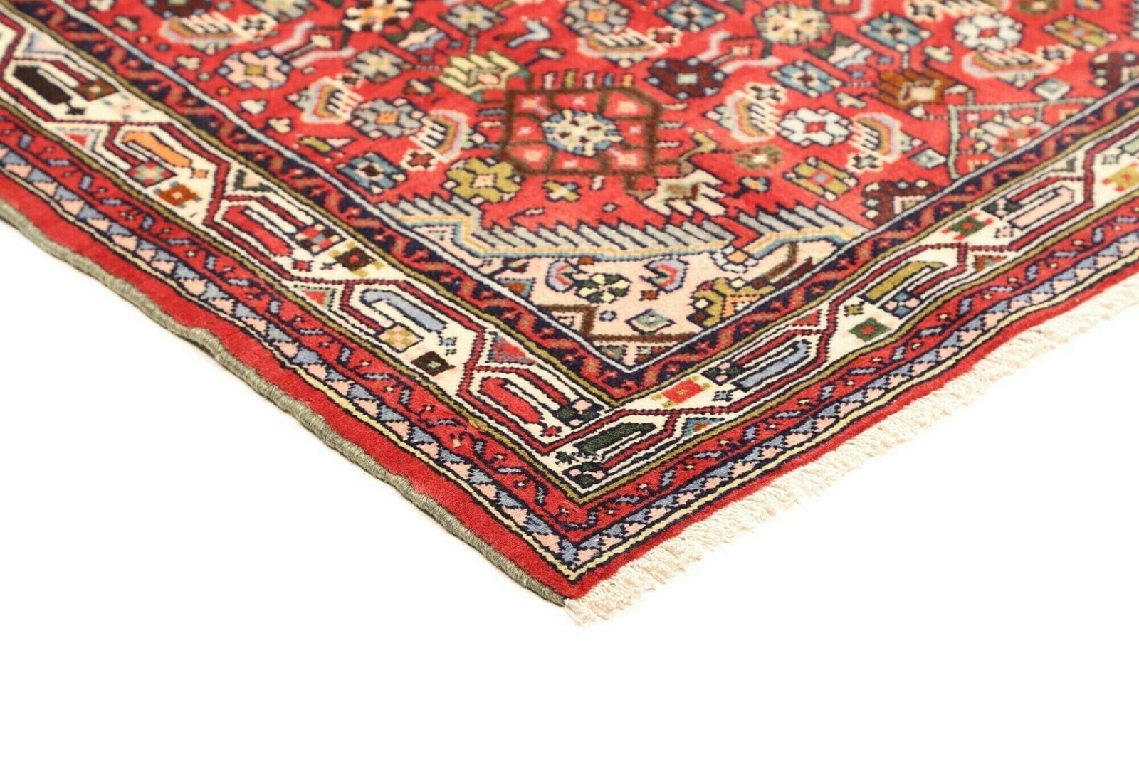 Hamadan Teppich 105 x 150 cm, Schurwolle, handgeknüpft, rot-blau