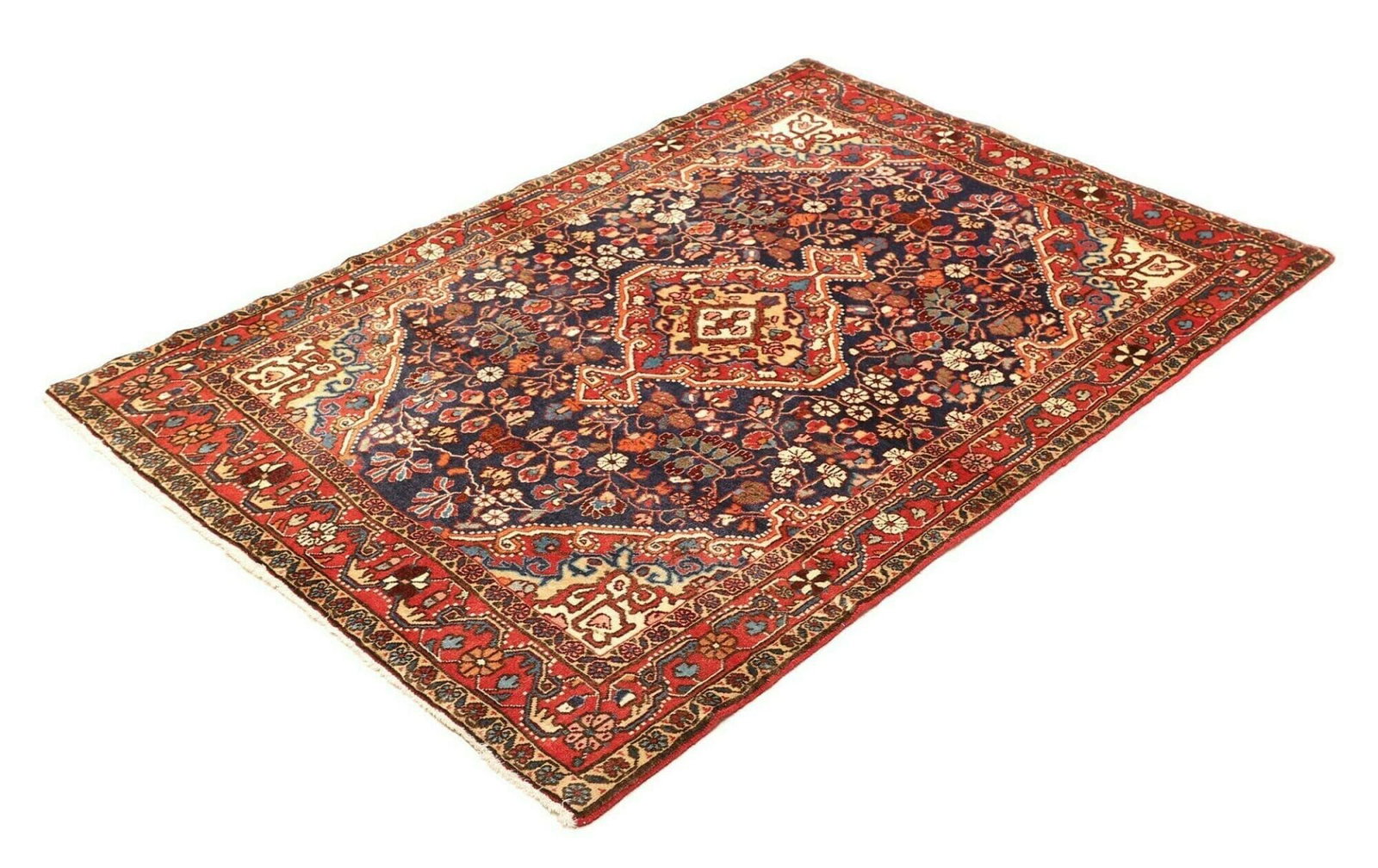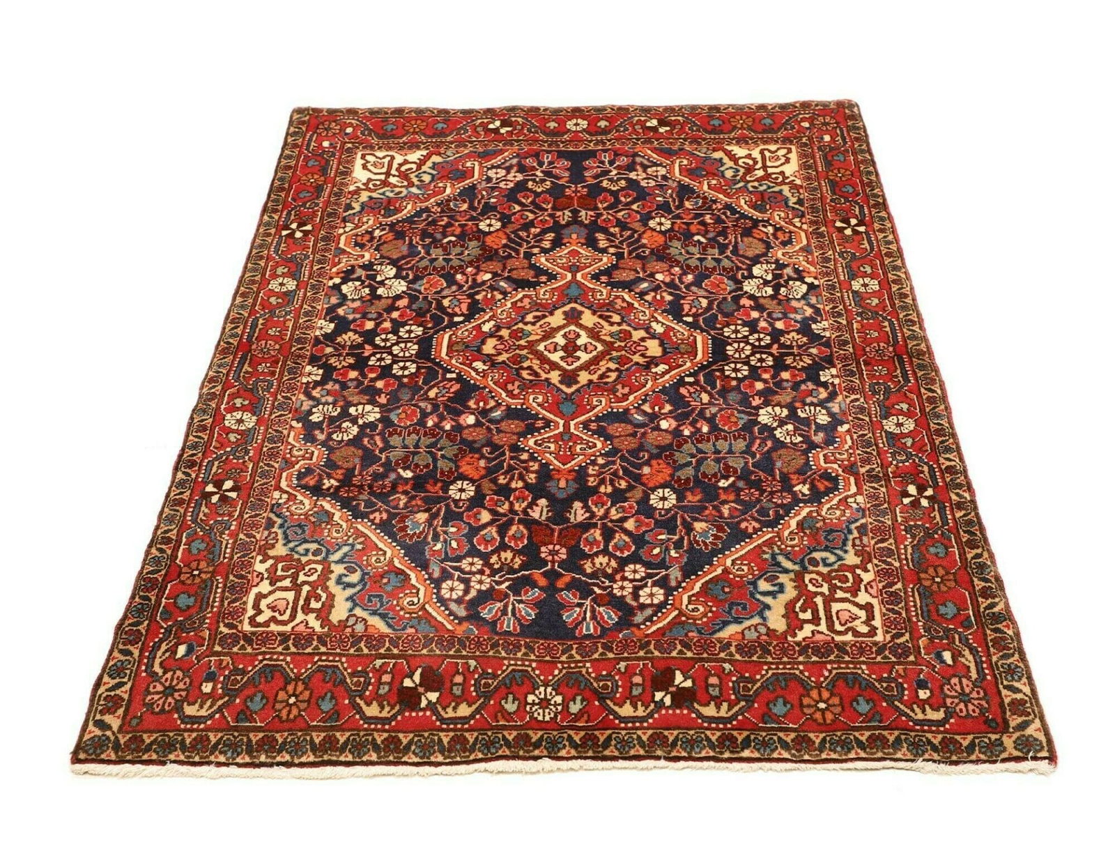 Hamadan Teppich | Knotendichte: ca. 200.000 Knoten/m² | Material: 100% Schurwolle | Kette: 100% Baumwolle | Größe: 106 x 151 cm | Zustand: Handgeknüpft | Herkunft: Iran | Muster: Geometrische und Herati-Muster
