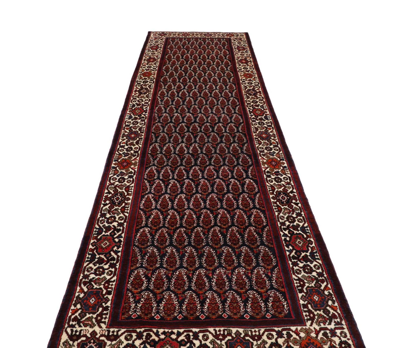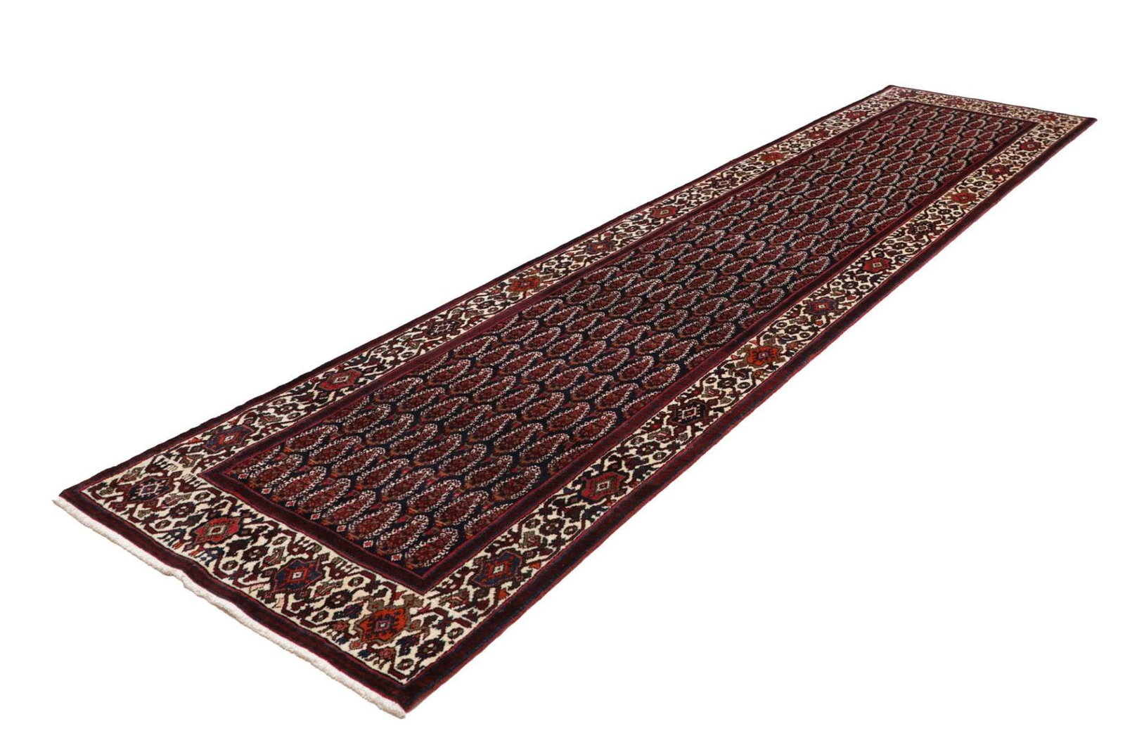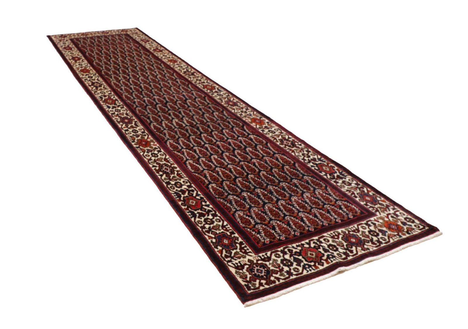 Hamadan Teppich 106 x 420 cm, Herati-Muster, handgeknüpft