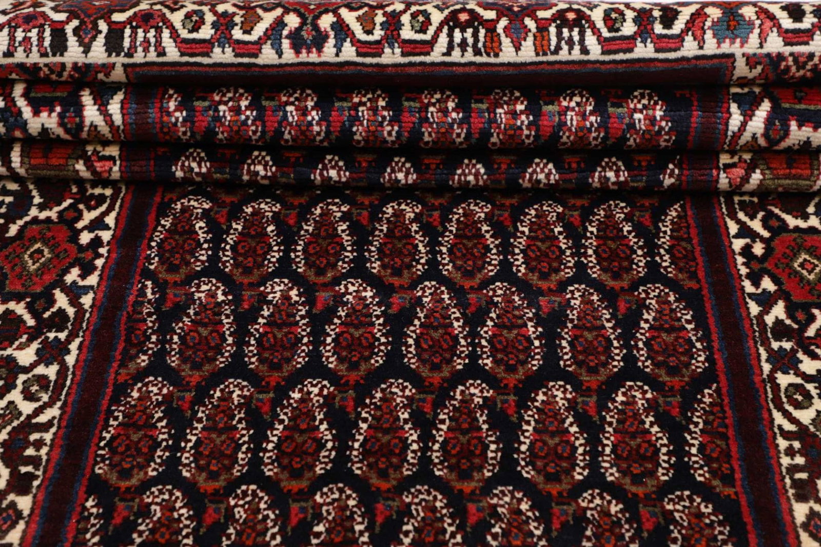 Hamadan Teppich | Knotendichte: ca. 200.000 Knoten/m² | Material: 100% Schurwolle | Größe: 106 x 420 cm | Zustand: Handgeknüpft | Herkunft: Iran | Muster: Herati und geometrische Muster | Höhe: ca. 7-10 mm