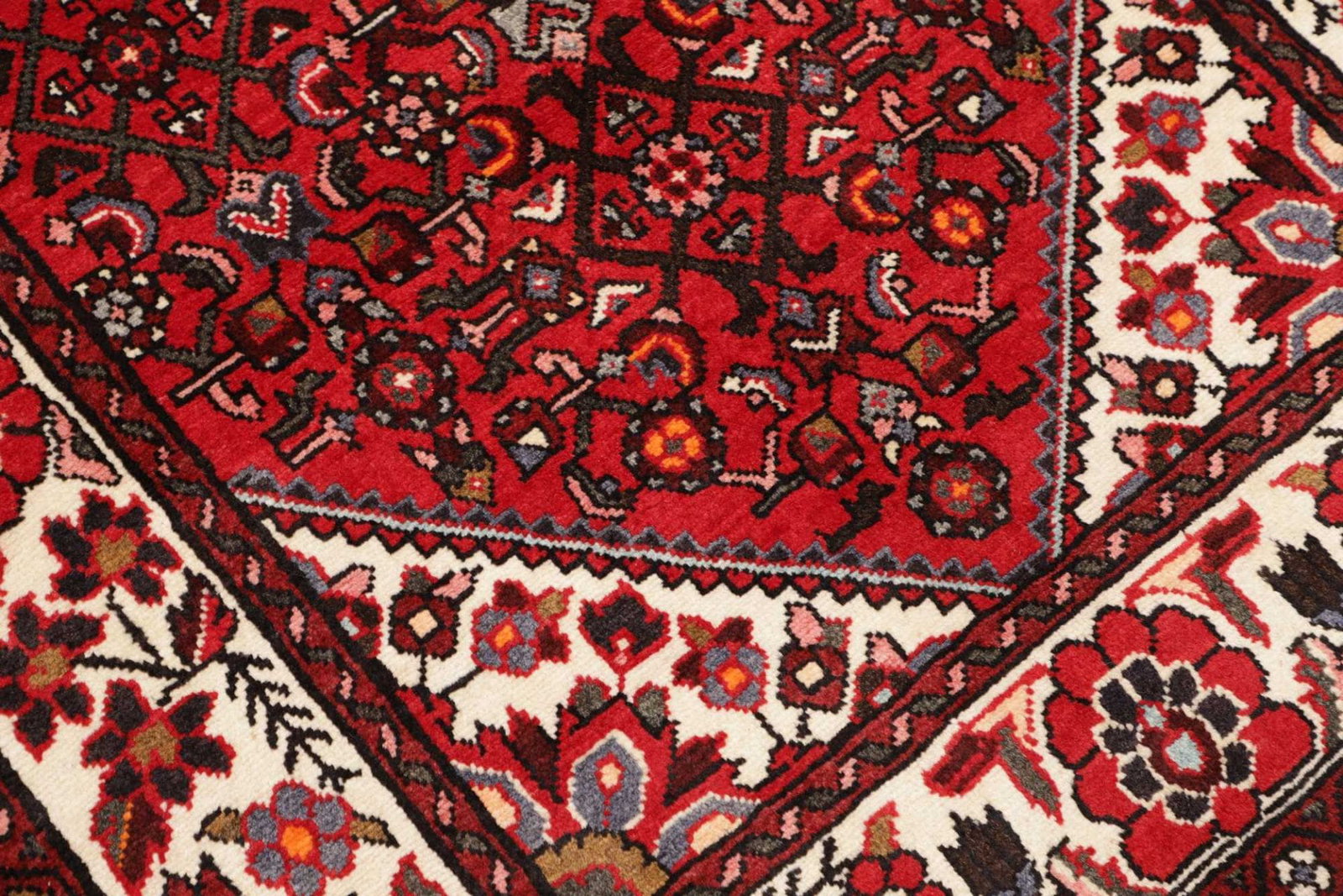 Ein ganz besonderes Merkmal dieses Hamadan Teppichs ist seine Fähigkeit, mit verschiedenen Einrichtungsstilen zu harmonieren. Ob moderne oder traditionelle Räume, der Teppich fügt sich nahtlos ein und bringt eine behagliche Note in Ihr Zuhause. Seine Pflegeleichtigkeit und Strapazierfähigkeit machen ihn zudem ideal für stark frequentierte Bereiche. Ein Hamadan Teppich ist nicht nur ein Einrichtungsgegenstand, sondern auch eine Investition in zeitlose Schönheit und Qualität.