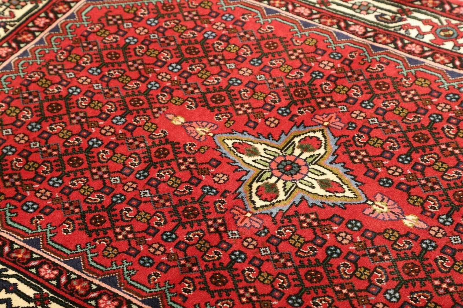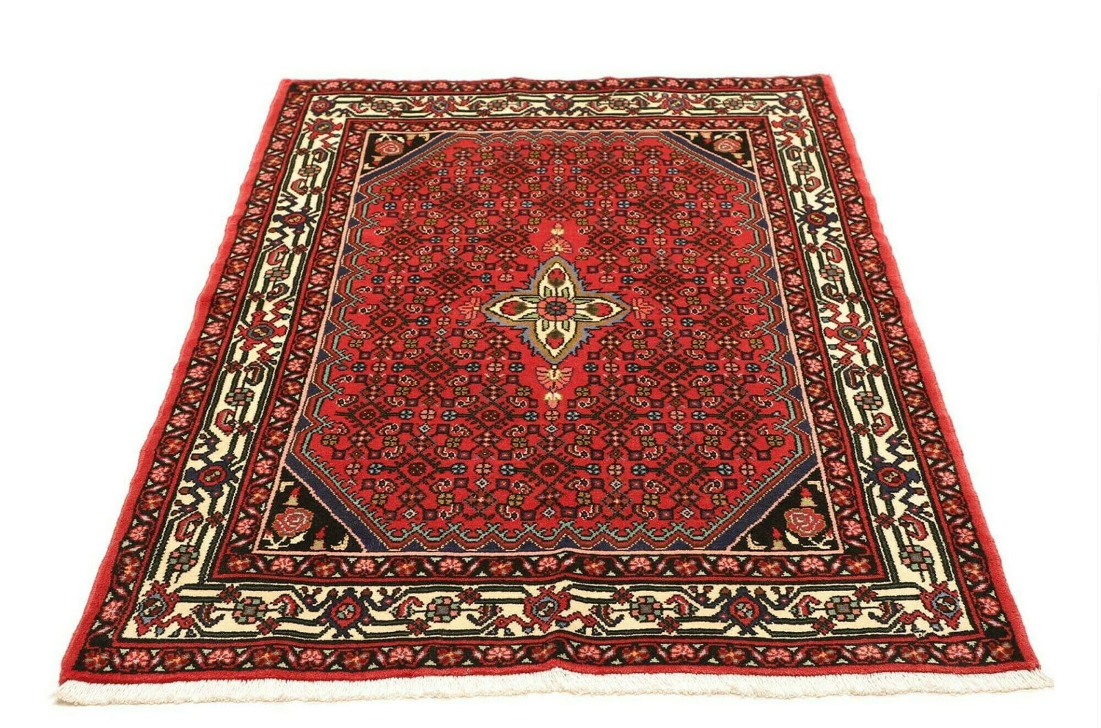 Hamadan Teppich 109 x 147 cm, handgeknüpft, Schurwolle, Herati-Muster