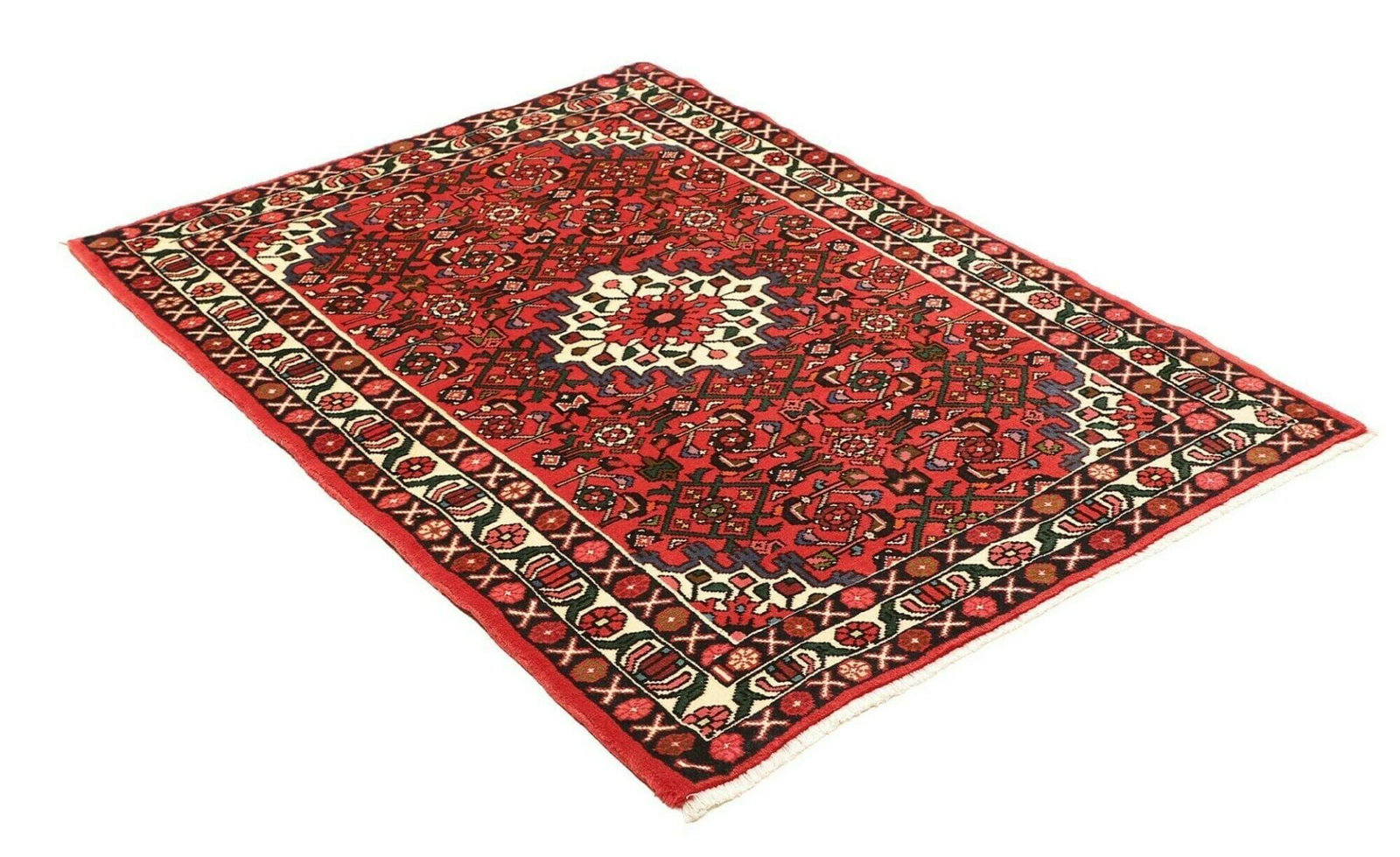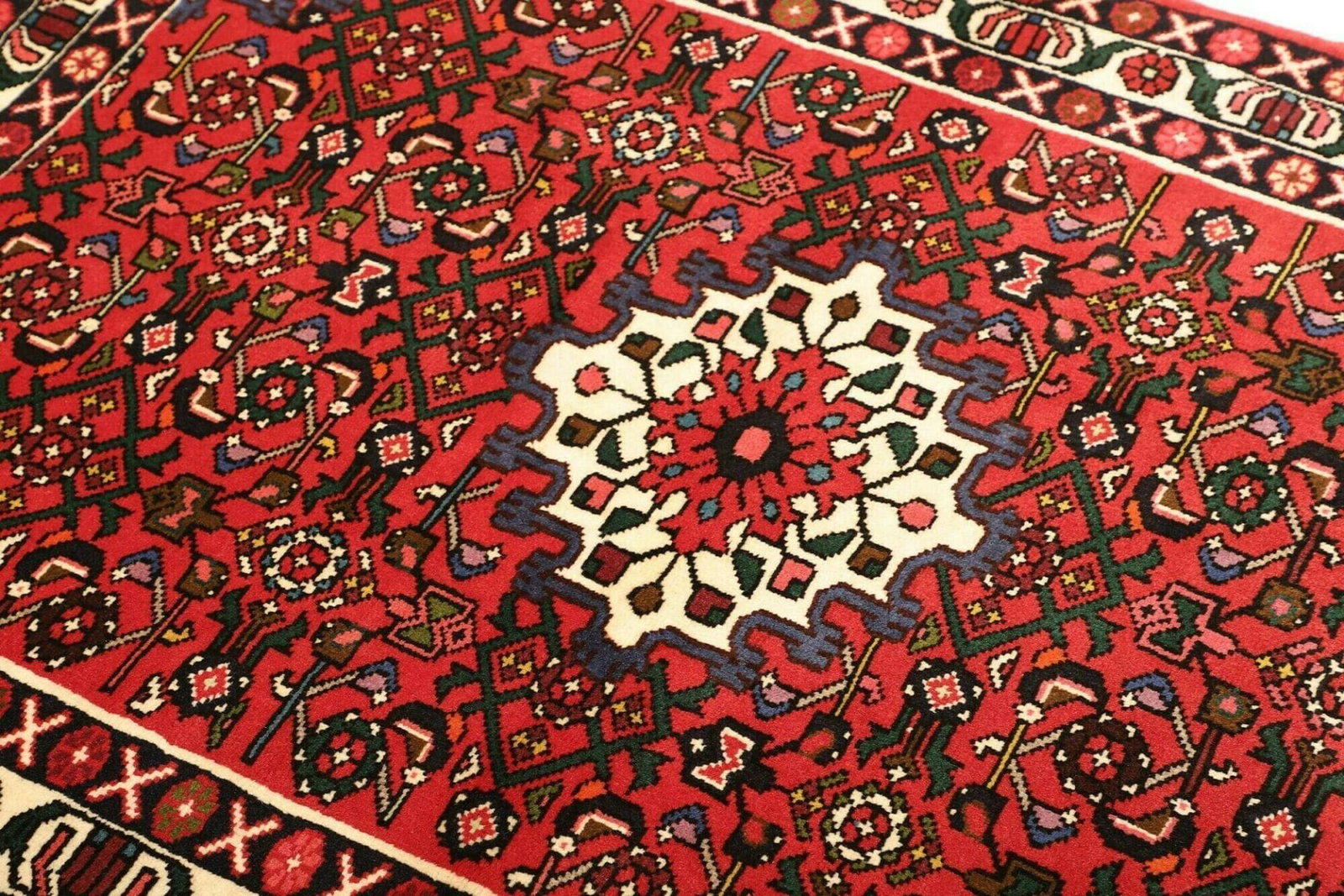 Hamadan Teppich | Knotendichte: ca. 200.000 Knoten/m² | Material: 100% Schurwolle | Kette: 100% Baumwolle | Größe: 109 x 149 cm | Herkunft: Iran | Zustand: Handgeknüpft | Muster: Herati und geometrische Formen