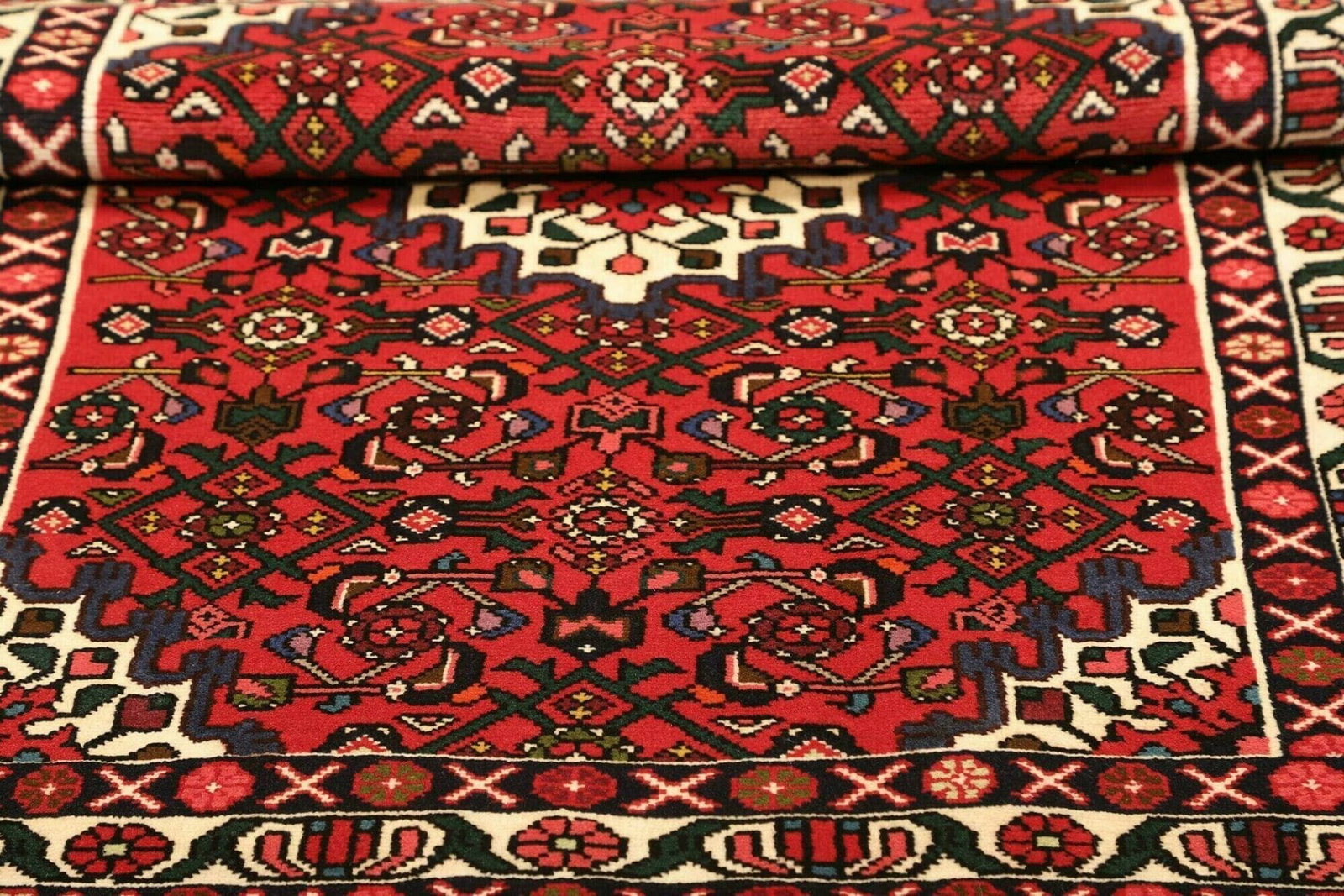 Der Perserteppich aus der Region Hamadan ist nicht nur ein Schmuckstück für Ihr Zuhause, sondern auch ein Ausdruck traditioneller Kunstfertigkeit und kulturellen Erbes. Diese handgeknüpften Teppiche werden in und um die Stadt Hamadan hergestellt, die für ihre einzigartigen Designs und robusten Materialien bekannt ist. Die Teppiche zeichnen sich durch eine Vielzahl von Farben und Mustern aus, wobei das berühmte Herati-Muster oft dominiert. Die häufig verwendeten Farbtöne umfassen klassische Blau- und Rottöne, die den Teppichen eine zeitlose Eleganz verleihen.