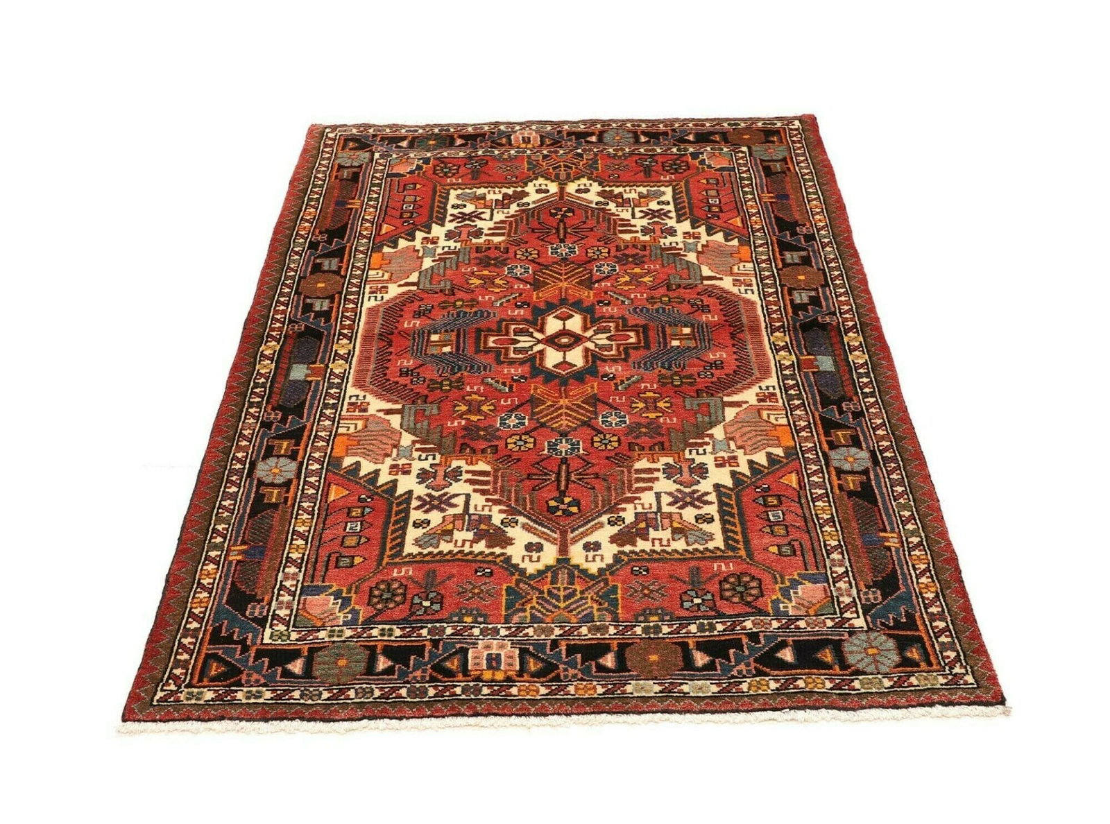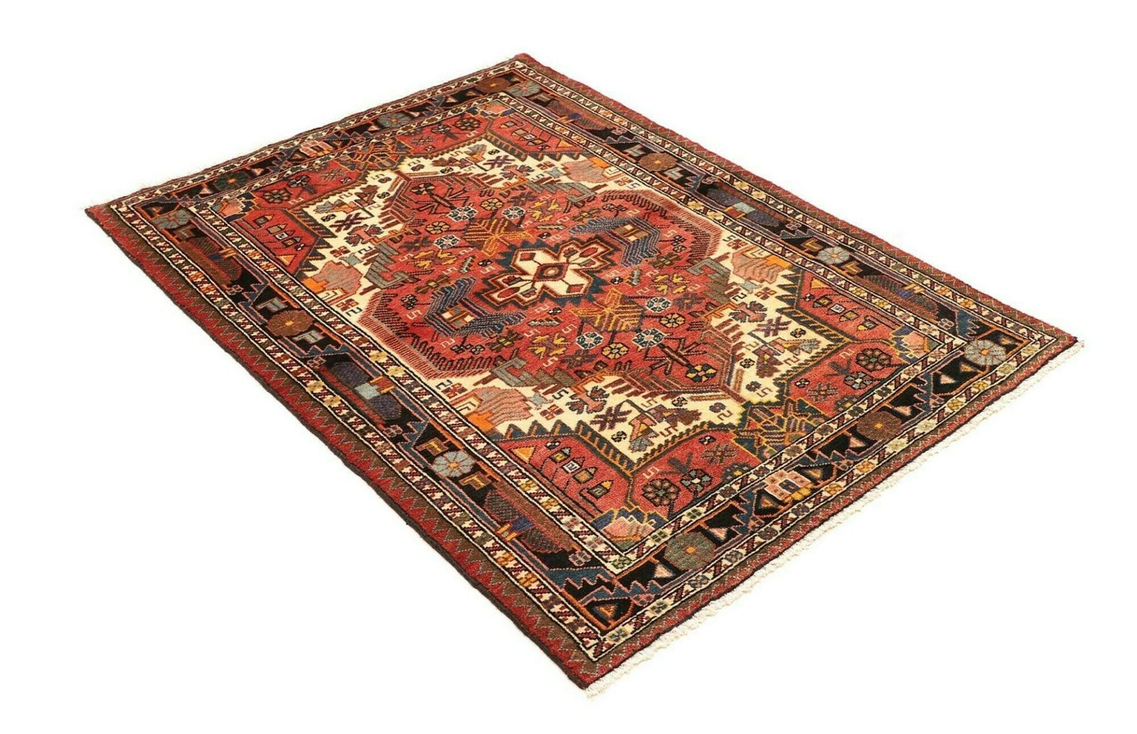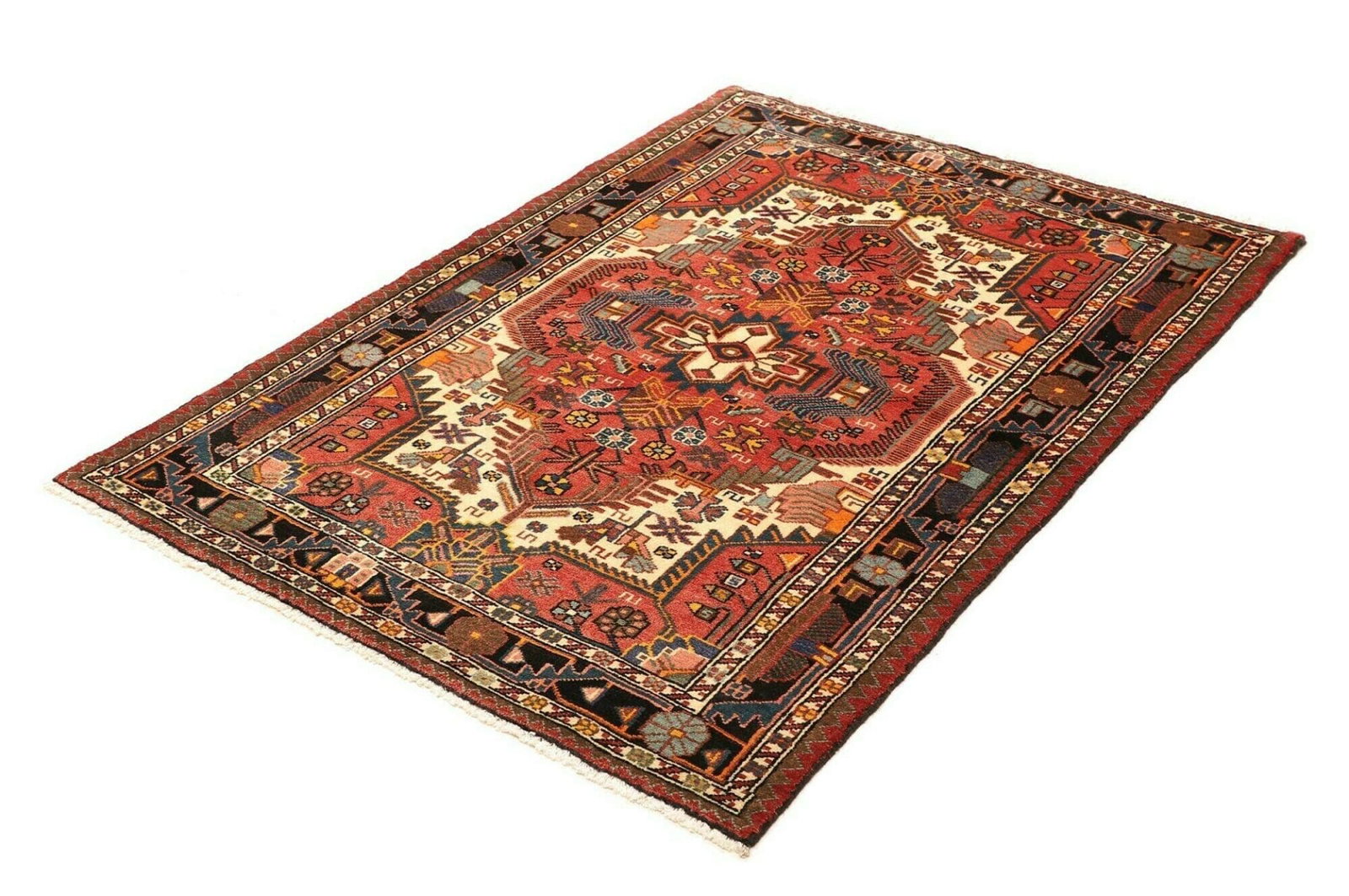 Hamadan Teppich 110 x 152 cm, Schurwolle, Herati-Muster, handgeknüpft