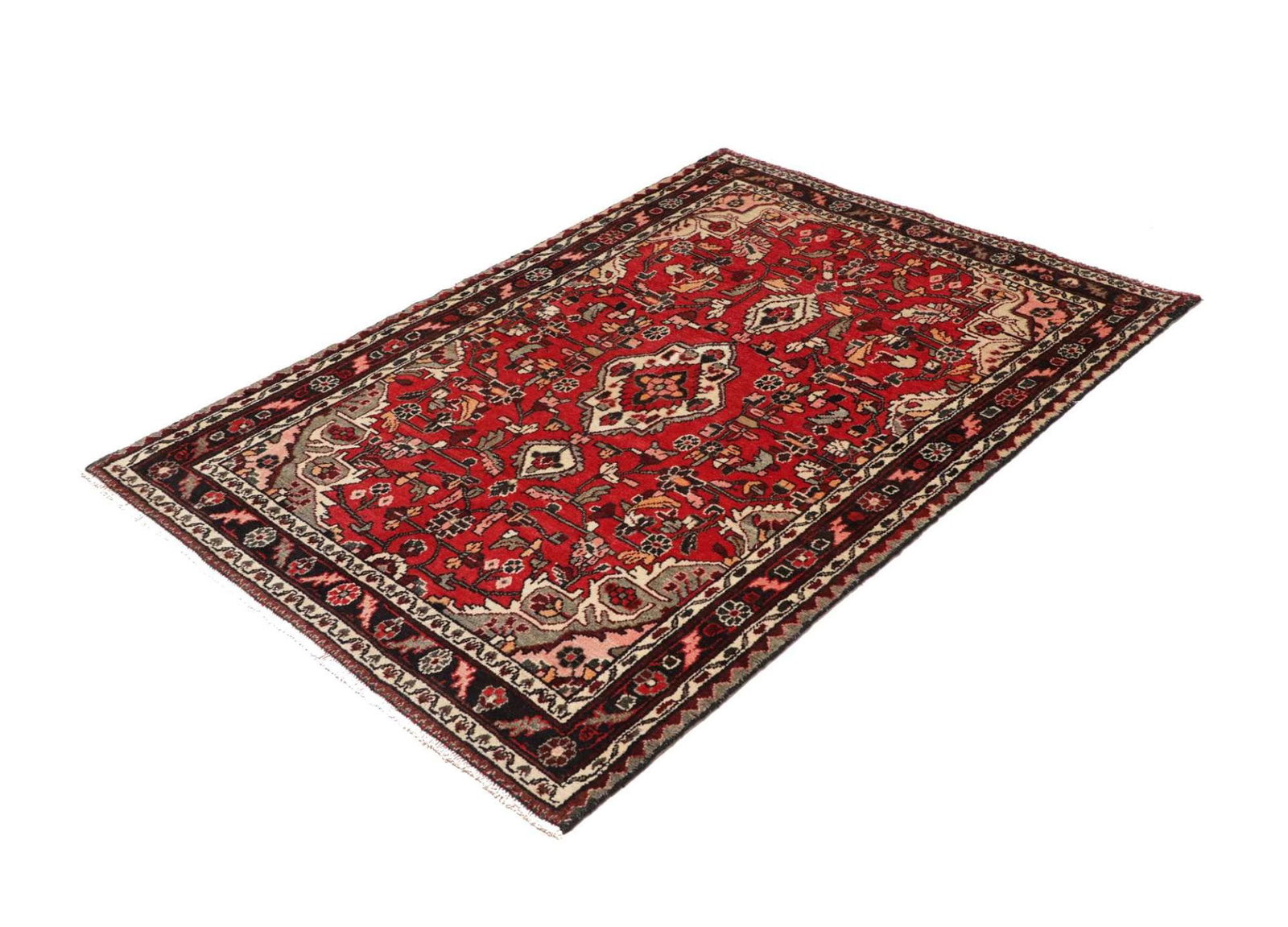 Hamadan Teppich 111 x 155cm, Schurwolle, Herati-Muster, handgeknüpft