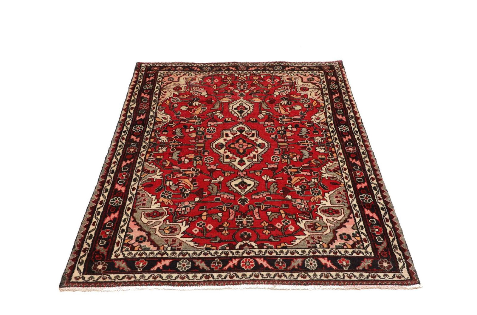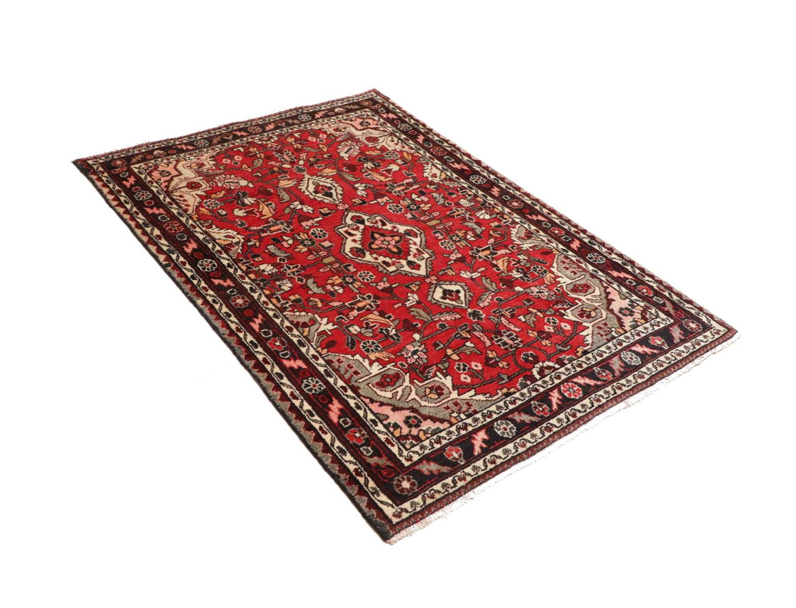 Hamadan Teppich | Knotendichte: ca. 200.000 Knoten/m² | Material: 100% Schurwolle | Kette: 100% Baumwolle | Größe: 111 x 155 cm | In ausgezeichnetem Zustand | Herkunft: Iran | Muster: Herati und geometrische Designs | Verarbeitung: Handgeknüpft