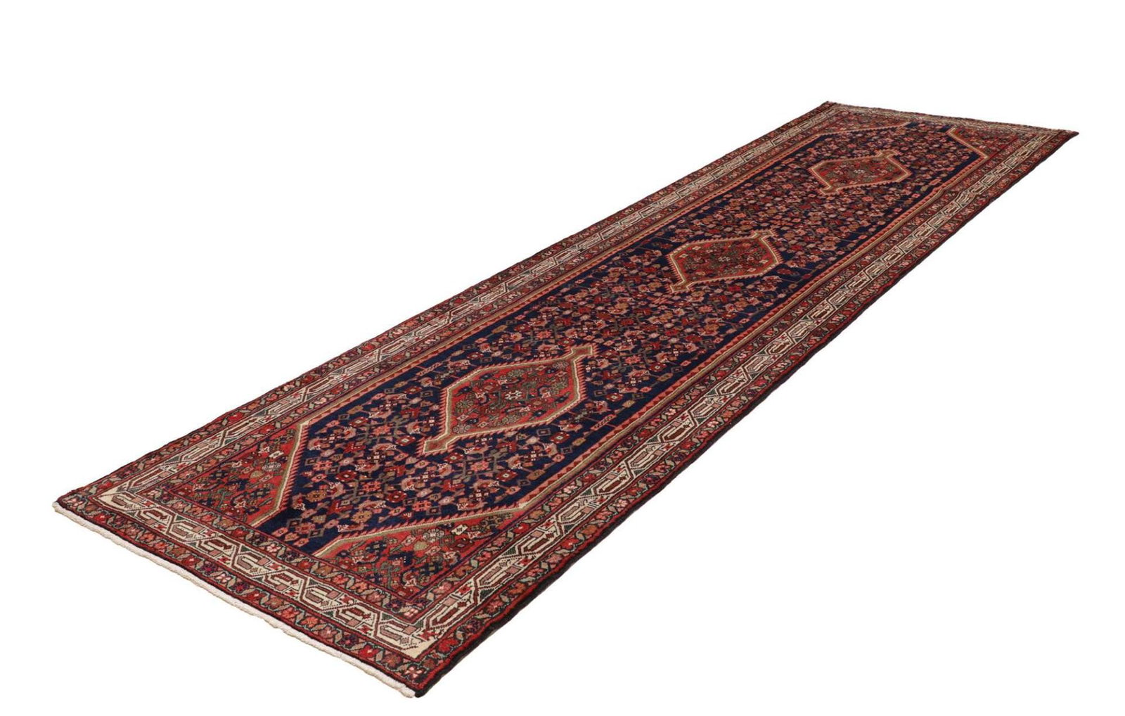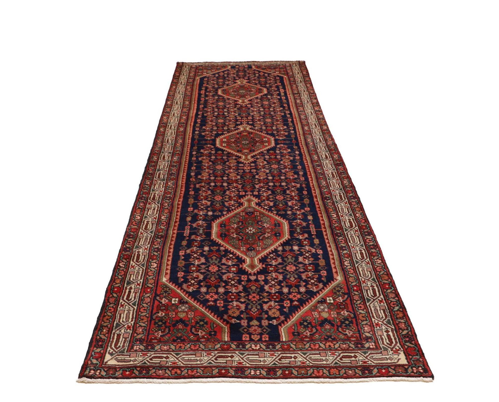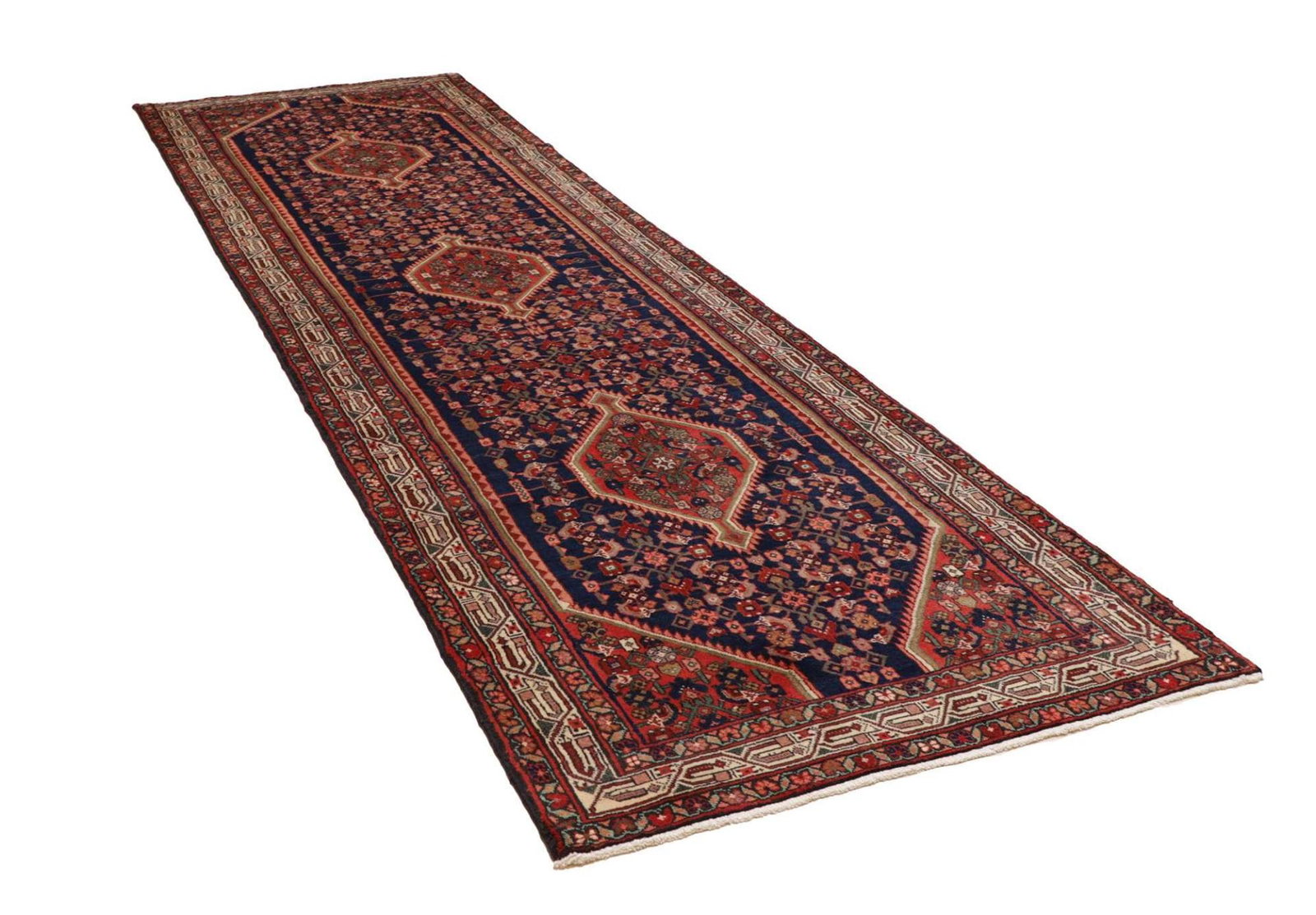 Hamadan Teppich 113 x 372cm, Schurwolle, Herati-Muster, handgeknüpft