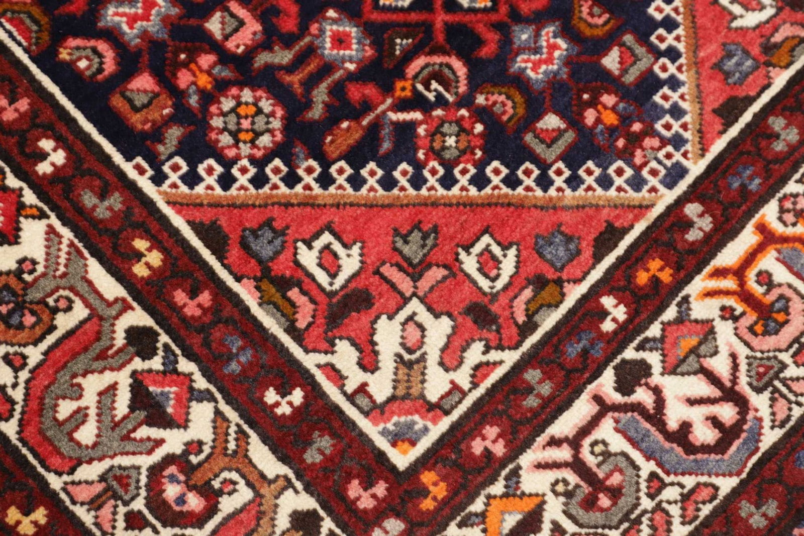Ein besonderes Merkmal des Hamadan Teppichs ist nicht nur seine ästhetische Anziehungskraft, sondern auch die vielseitige Anwendbarkeit und Pflegeleichtigkeit. Die verwendete Wolle macht den Teppich resistent gegen Schmutz und Flecken, sodass er auch in stark frequentierten Räumen gut zur Geltung kommt. Zudem sind handgeknüpfte Teppiche wie dieser in der Regel einfacher zu reinigen und können mit der richtigen Pflege über generations hinweg geschätzt werden.